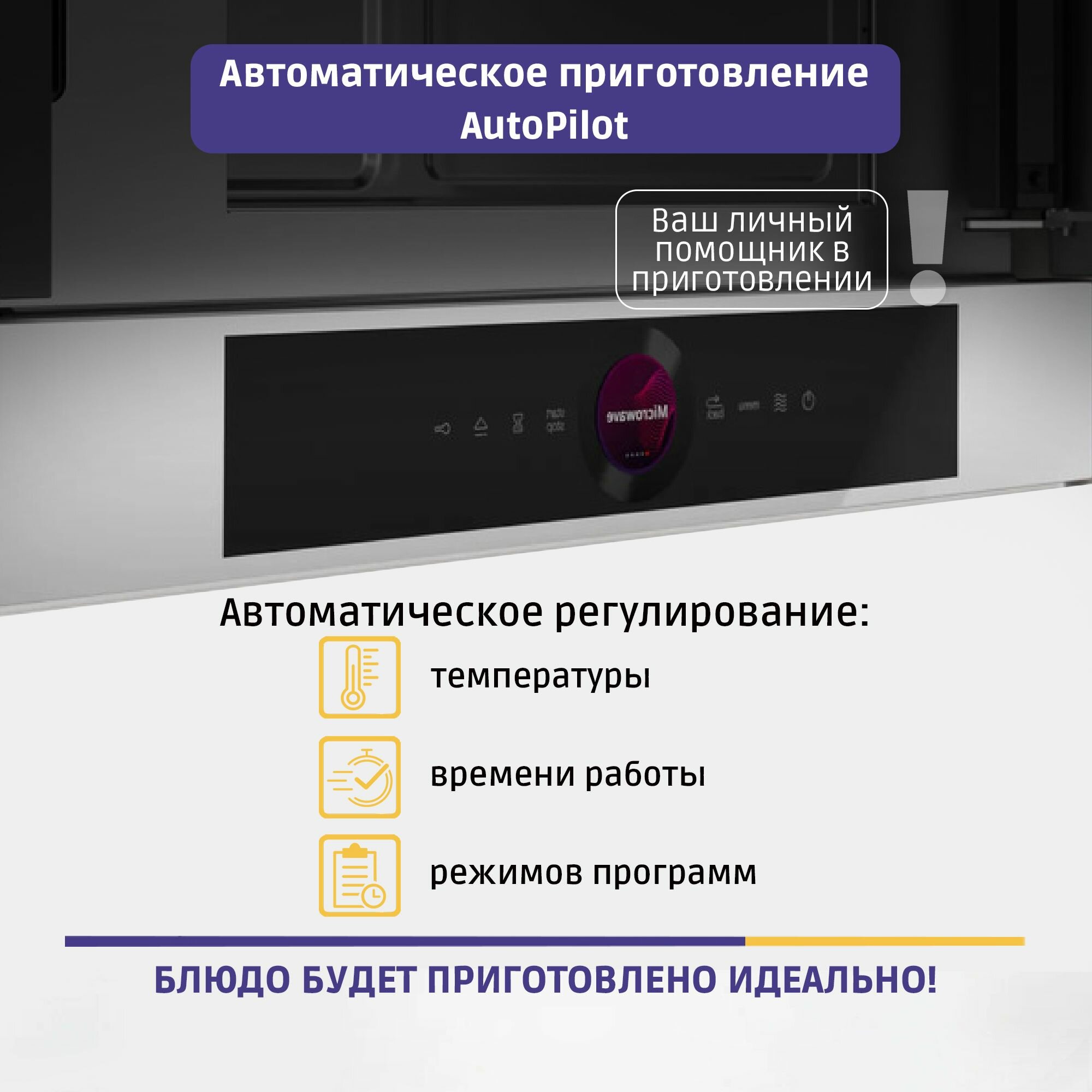 | Особенности | без поворотного стола / блокировка от детей / дисплей / подсветка камеры / программирование рецептов в память / сенсор пара |