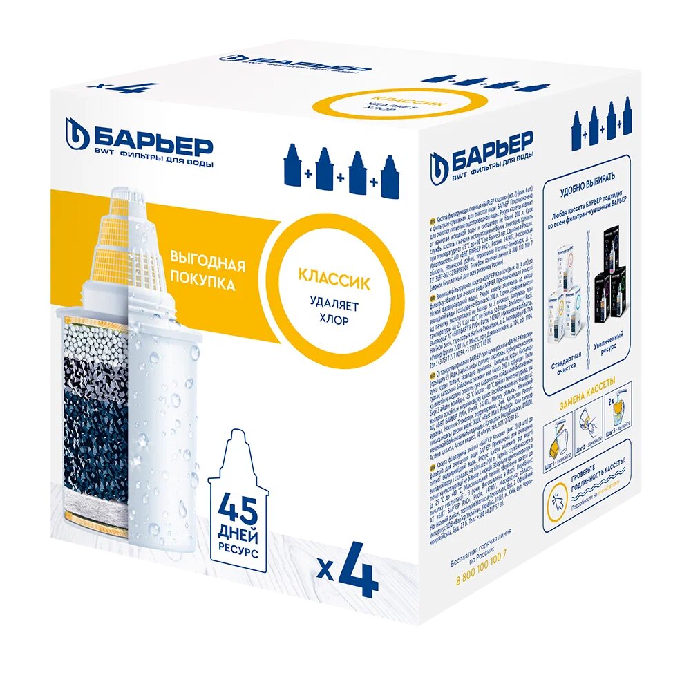 Купить Комплект сменных кассет для фильтра кувшина Барьер Классик, 4 шт, против хлора и вредных примесей
