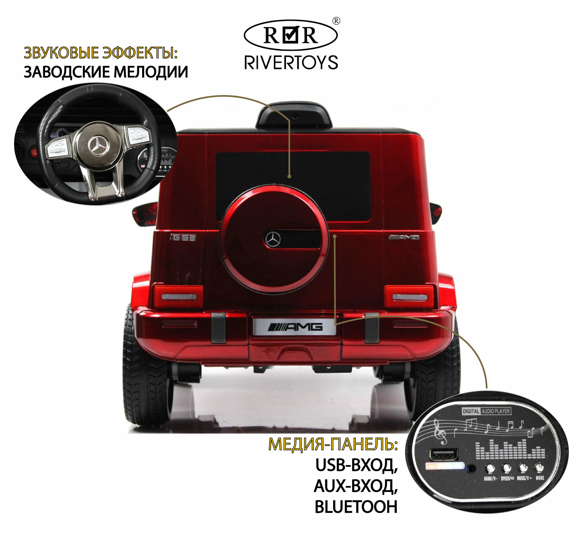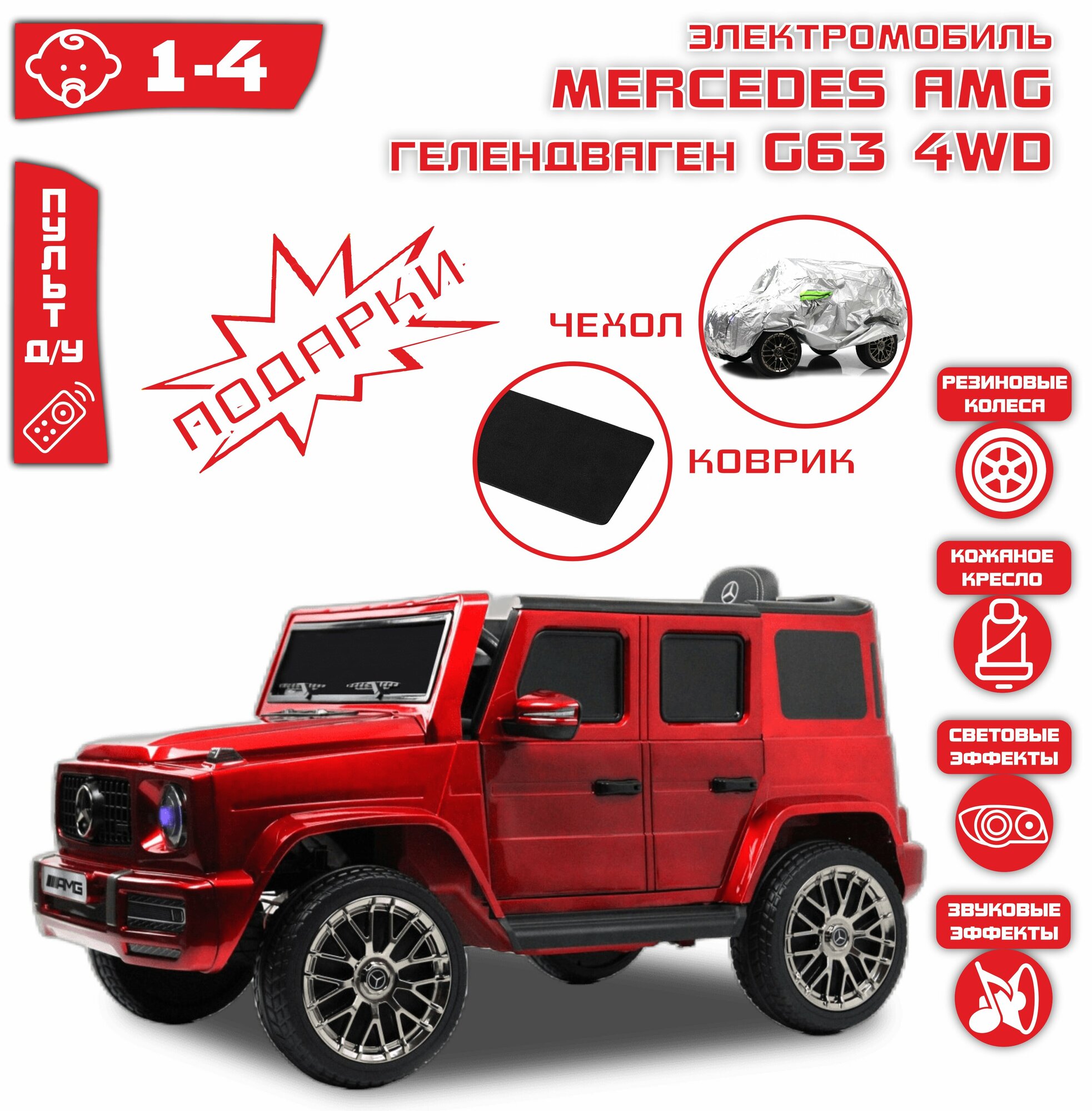 СохранитьДетский электромобиль Mercedes-AMG G63 4WD (G333GG) красный глянец (RiverToys) интересное: