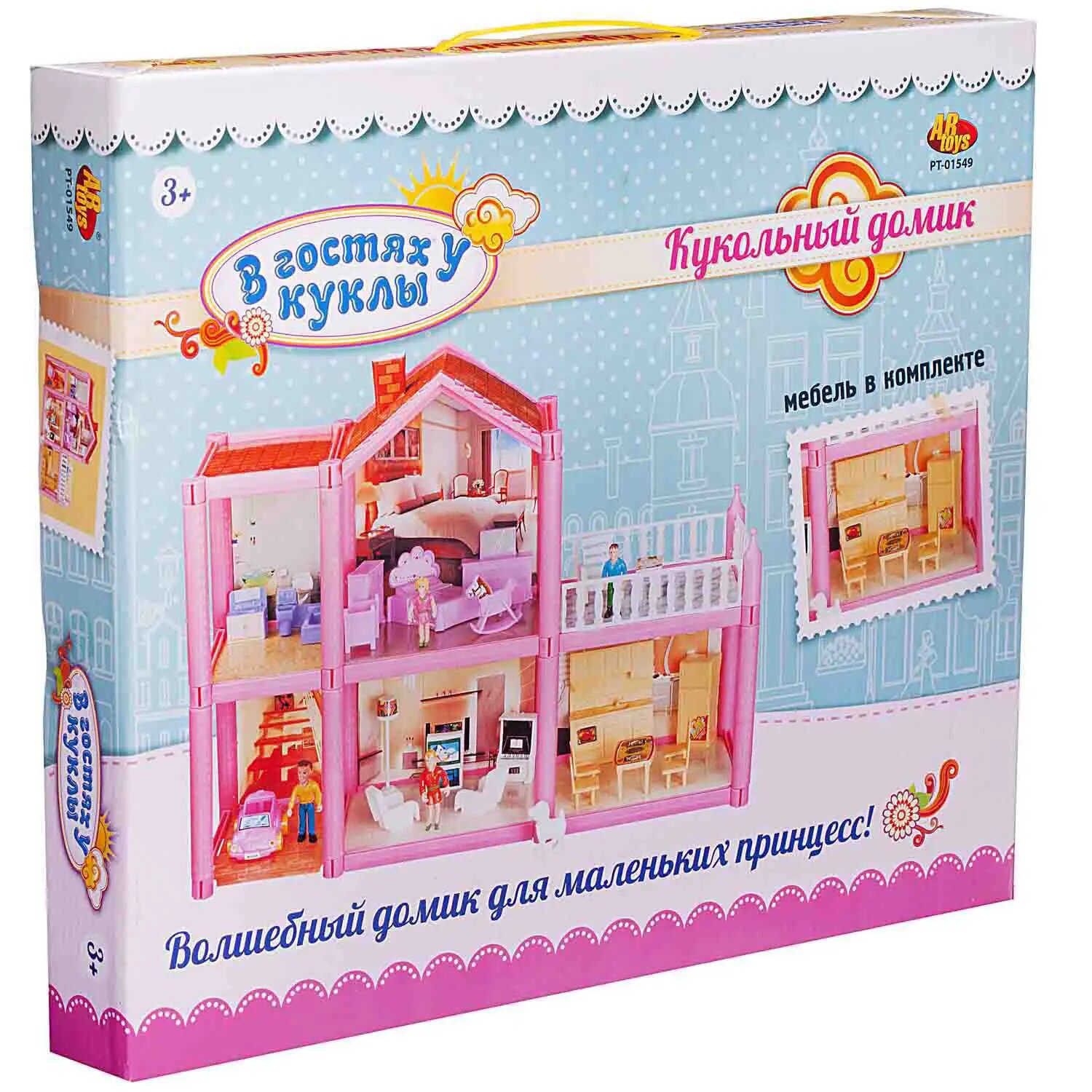 Кукольный домик для девочек Abtoys В гостях у куклы, с мебелью и человечками, 113 деталей, в коробке PT-01549 интересное: