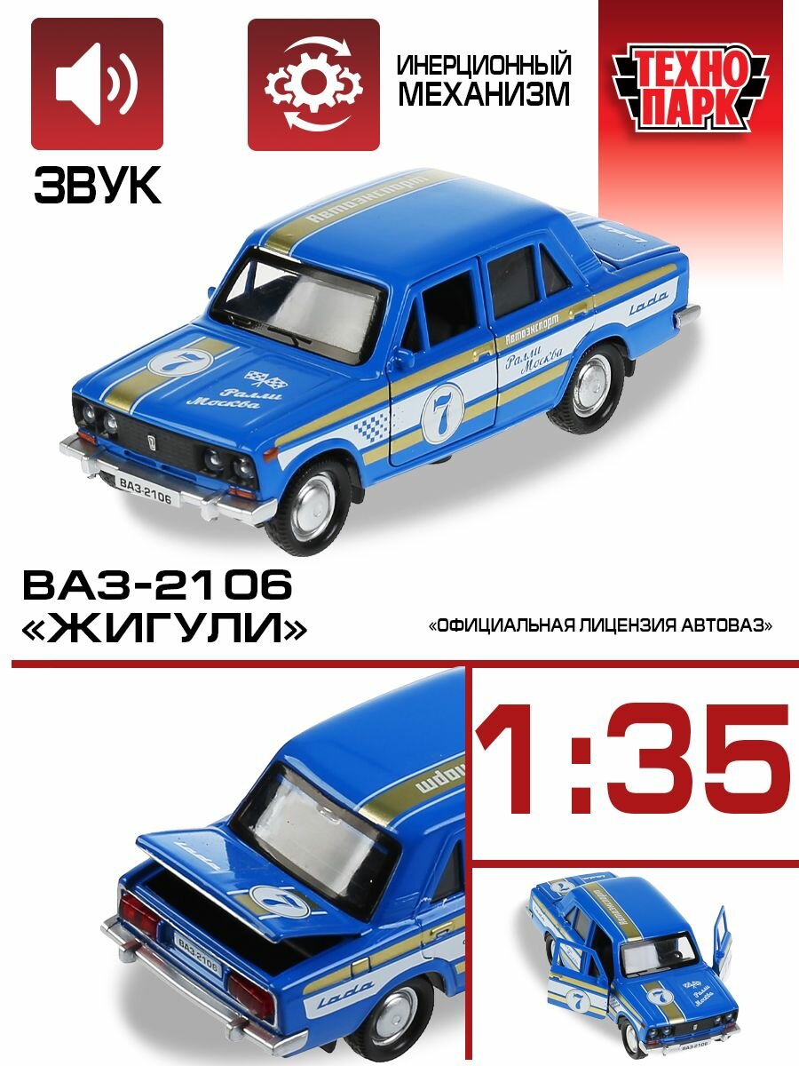 Машинка детская ВАЗ 2106 Жигули Спорт 12 см, Технопарк, синяя, открываются двери и багажник, металлическая интересное: