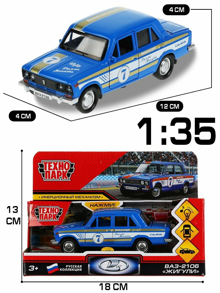 Машинка Технопарк ВАЗ-2106 Жигули Спорт 12 см со светом и звуком 2106-12SLSRT-BU