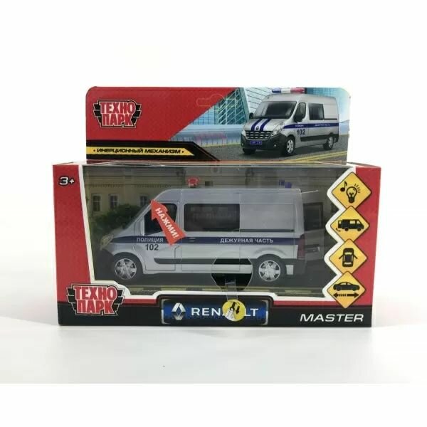 СохранитьТехнопарк Машина металл свет-звук RENAULT master полиция 14 см интересное: