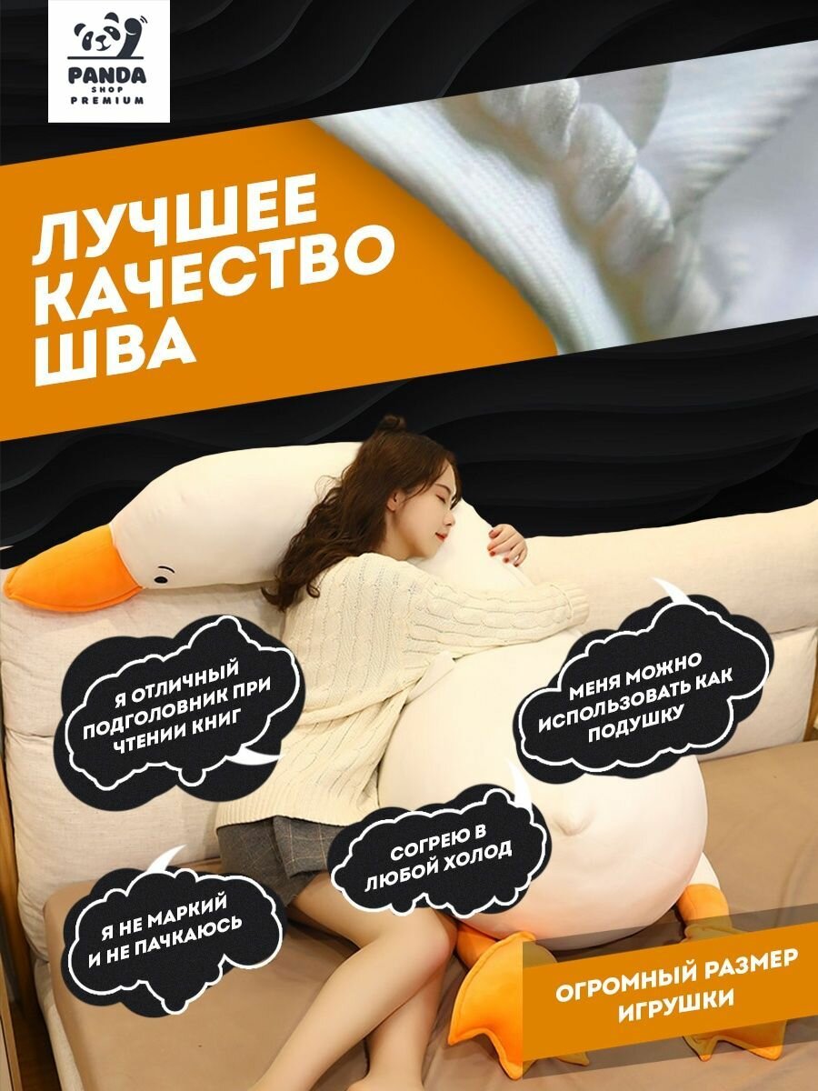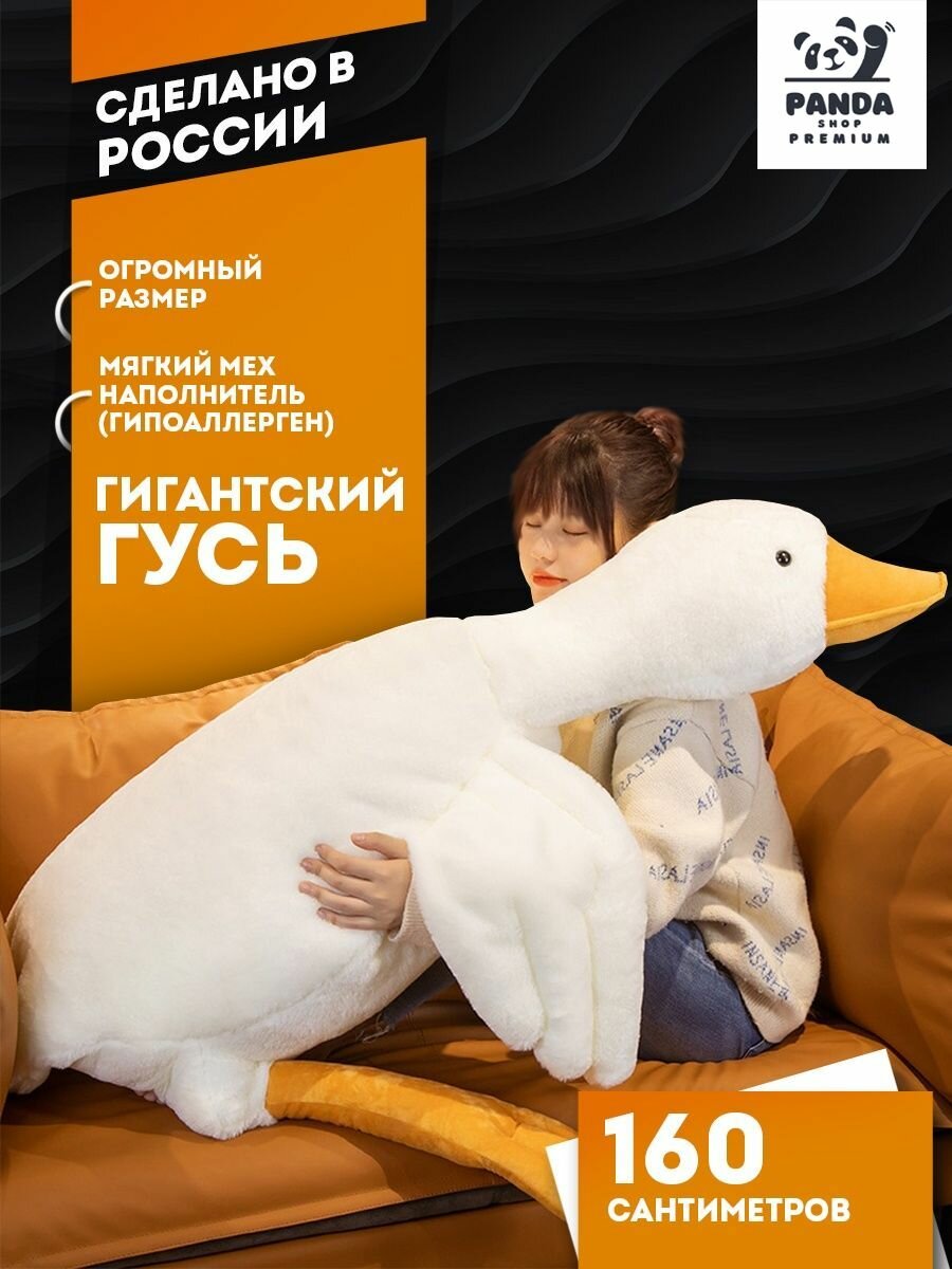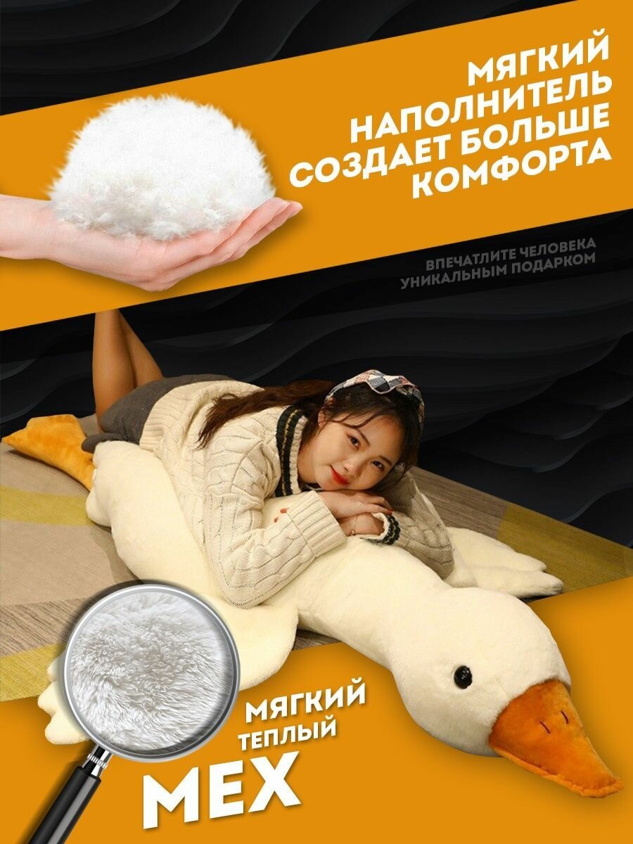 Мягкая игрушка Гигантский гусь Толстяк 160 см, подушка-обнимашка утка, белый интересное: