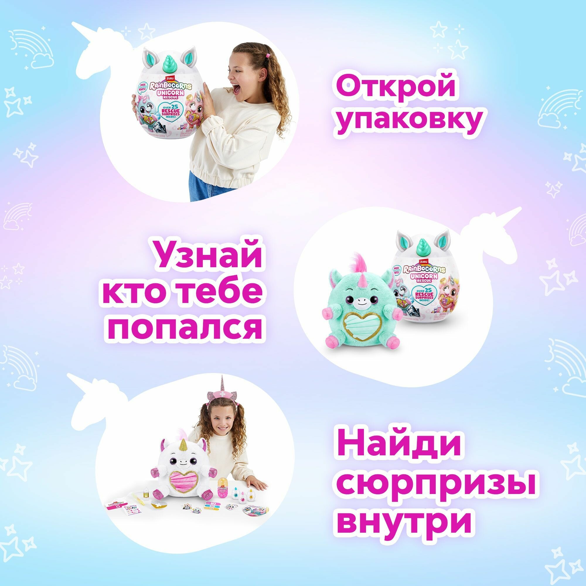 Большая мягкая игрушка 30 см Единорог со слаймом, брелок, наклейки ZURU Rainbocorns Unicorn Rescue серия 4, яйцо-сюрприз, в ассортименте, подарок для девочки, 3+, 9262B
