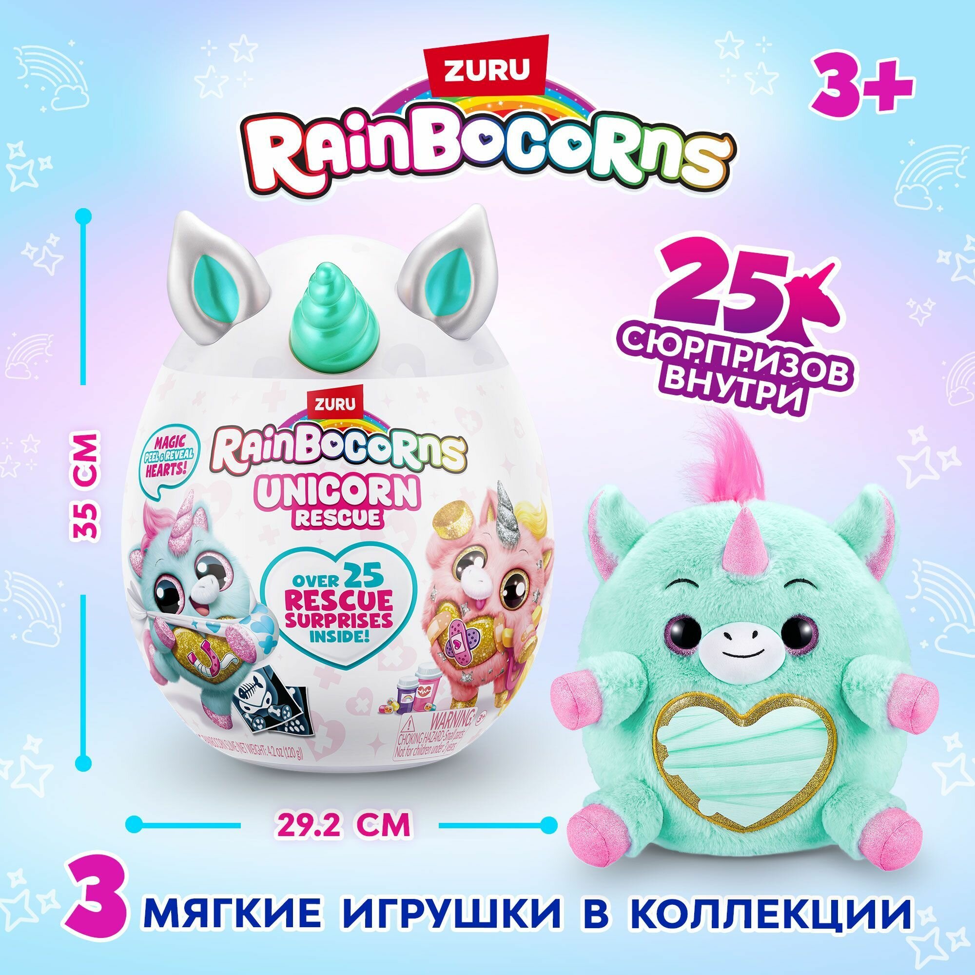 Большая мягкая игрушка 30 см Единорог со слаймом, брелок, наклейки ZURU Rainbocorns Unicorn Rescue серия 4, яйцо-сюрприз, в ассортименте, игрушки для девочек, 3+, 9262
