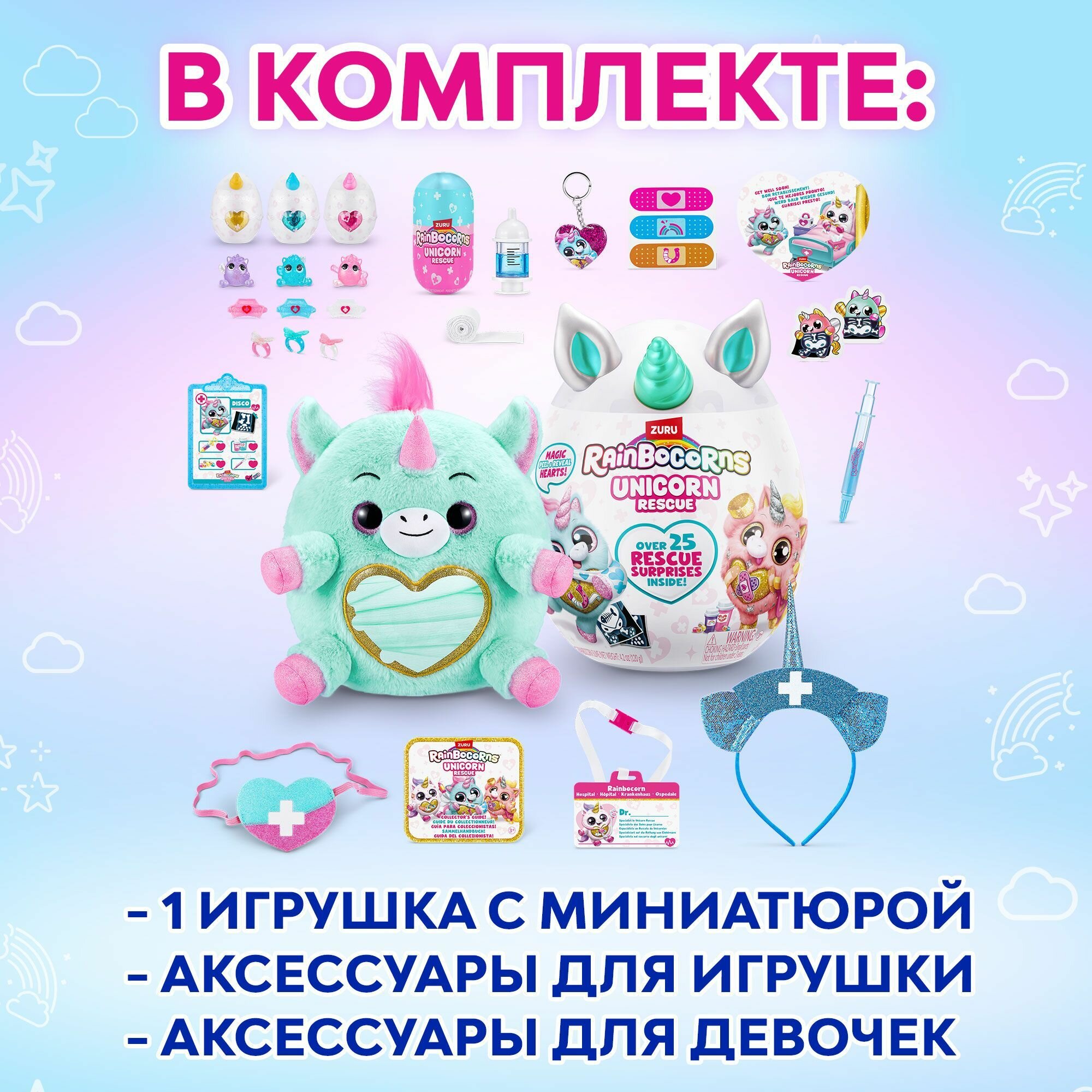 Большая мягкая игрушка Единорог 30 см ZURU Rainbocorns Unicorn Rescue серия 4, яйцо-сюрприз с аксессуарами для волос, брелок, слайм, волшебная палочка, игрушка для девочки, 3+, 9262D