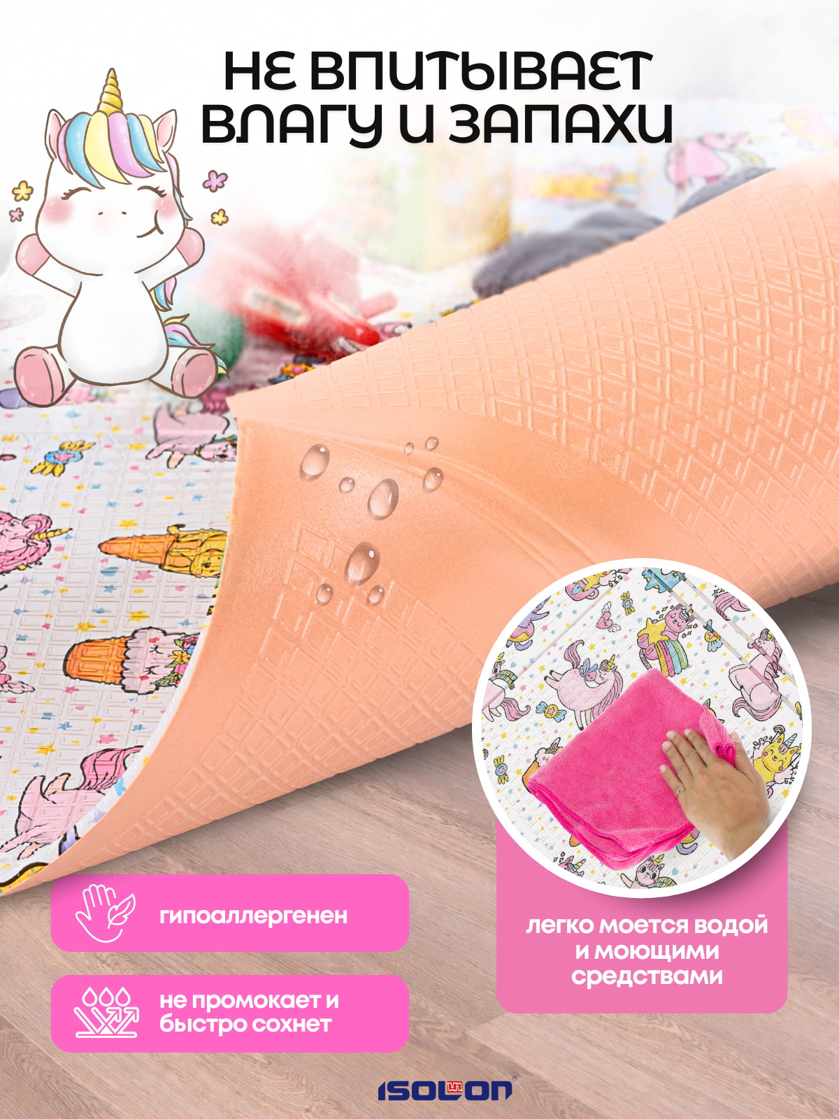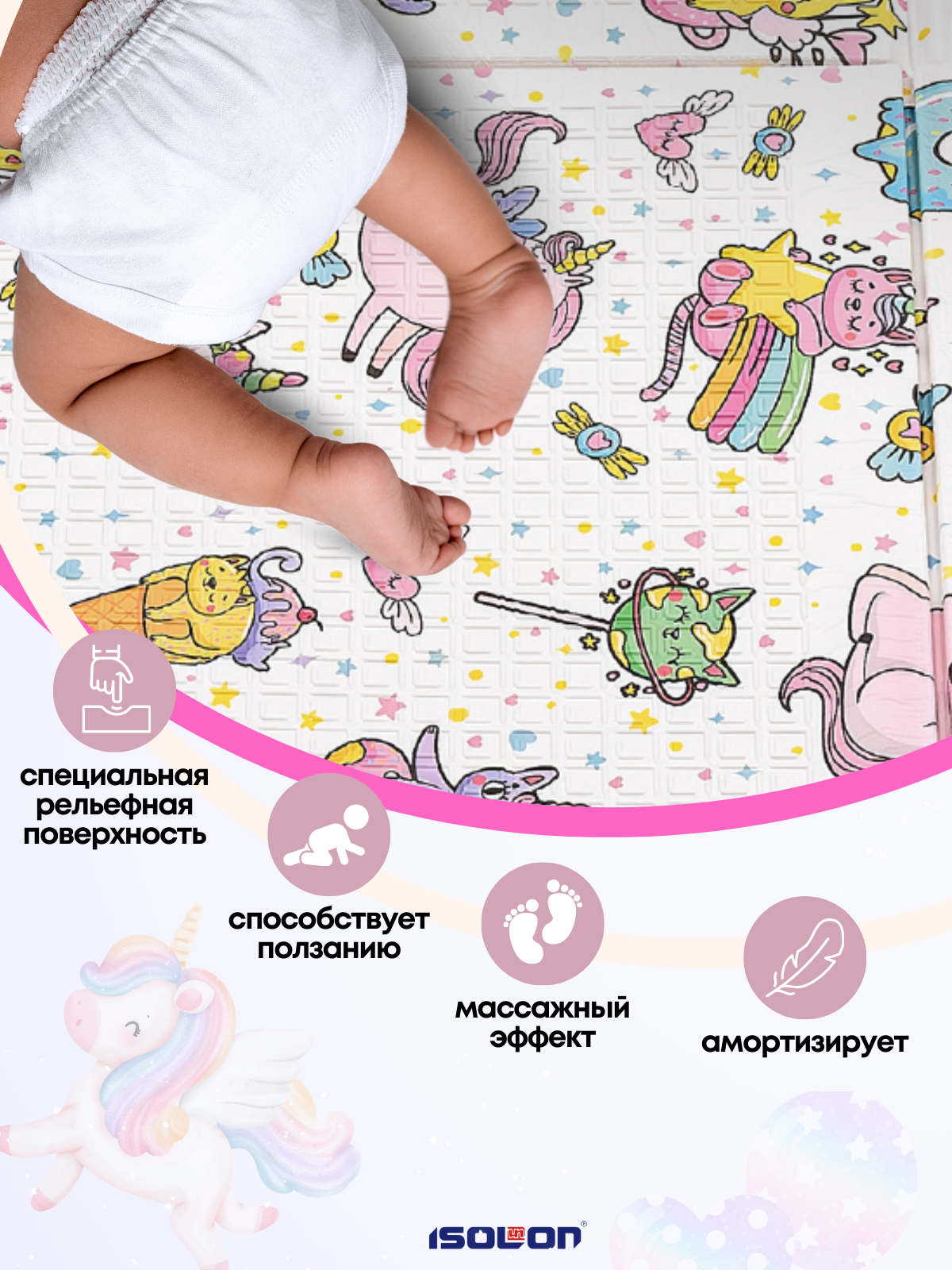 СохранитьДетский развивающийся коврик складной коврик Единороги в чехле ISOLON интересное:
