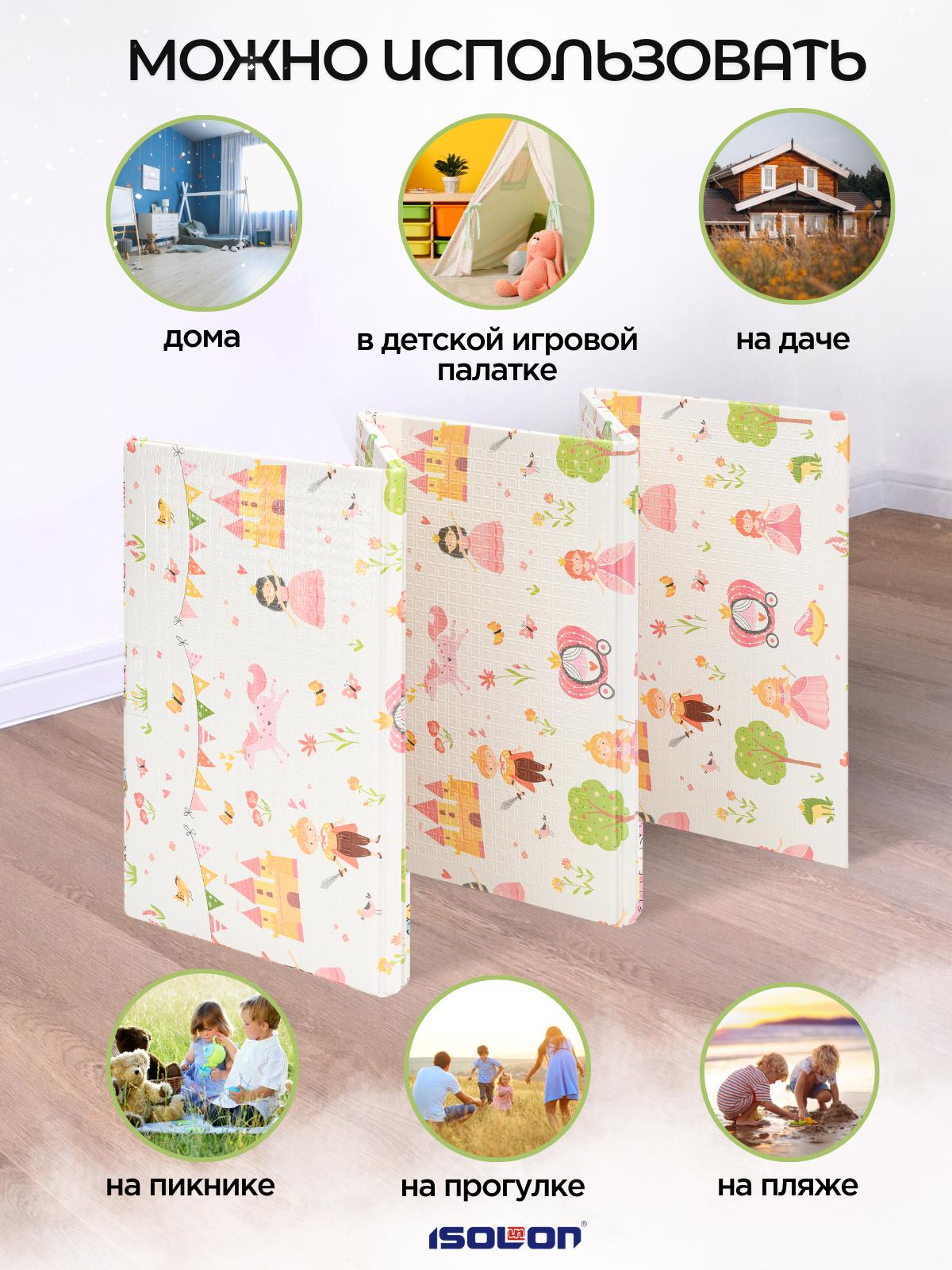 СохранитьДетский развивающийся коврик складной коврик Принцессы в чехле ISOLON интересное: