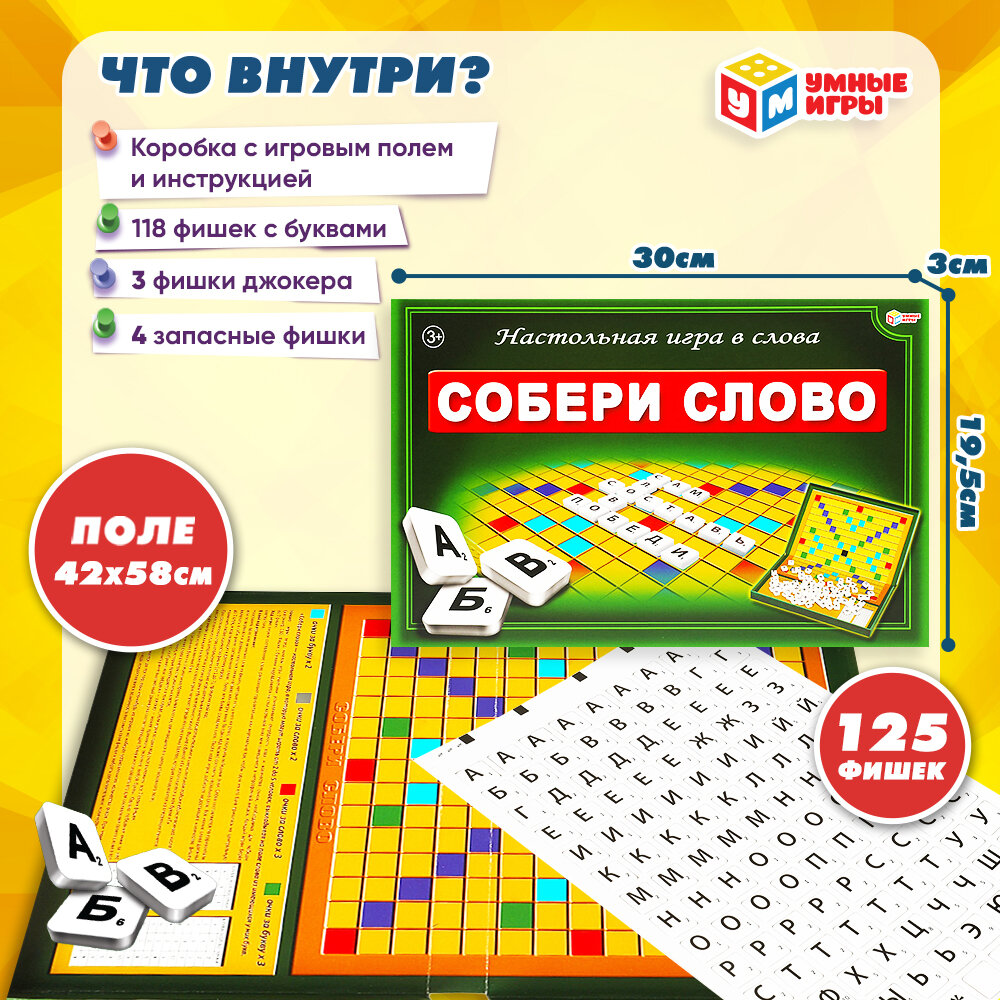 Купить Настольная игра Словодел Собери Слово, Умные игры, 125 картонных фишек, для детей старше 3-х лет