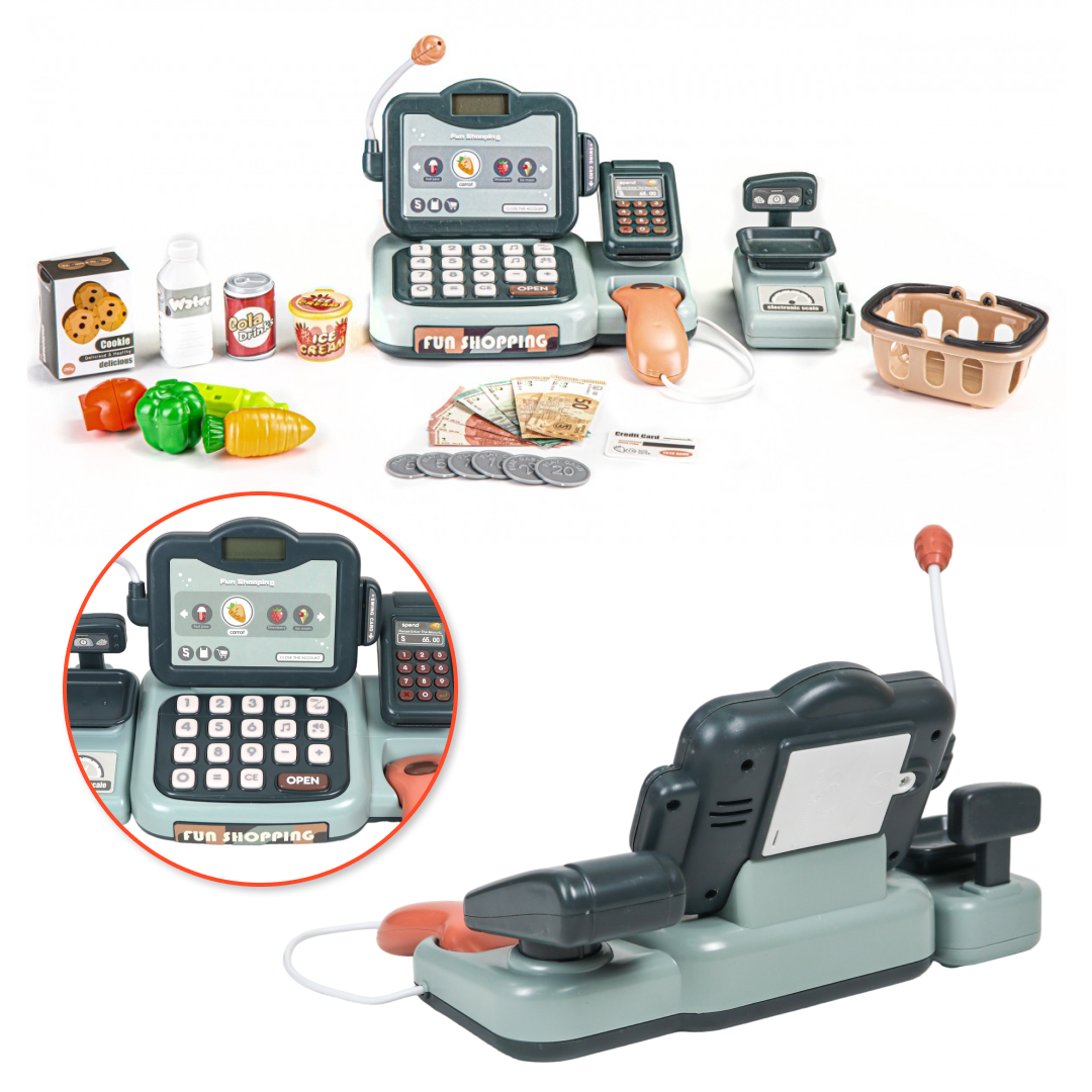Купить Касса игрушечная детская с деньгами кредитной картой и банковским терминалом, 24 предмета