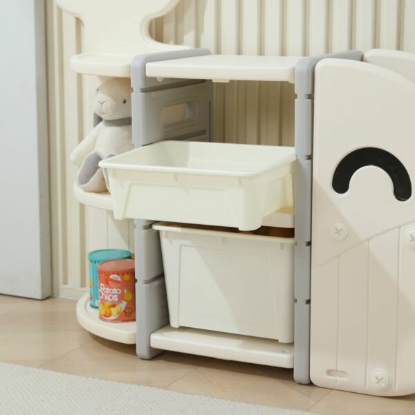 Стеллаж для игрушек UNIX Kids Whale White 3 ящика + полки, напольный в детскую комнату, пластиковый, белый