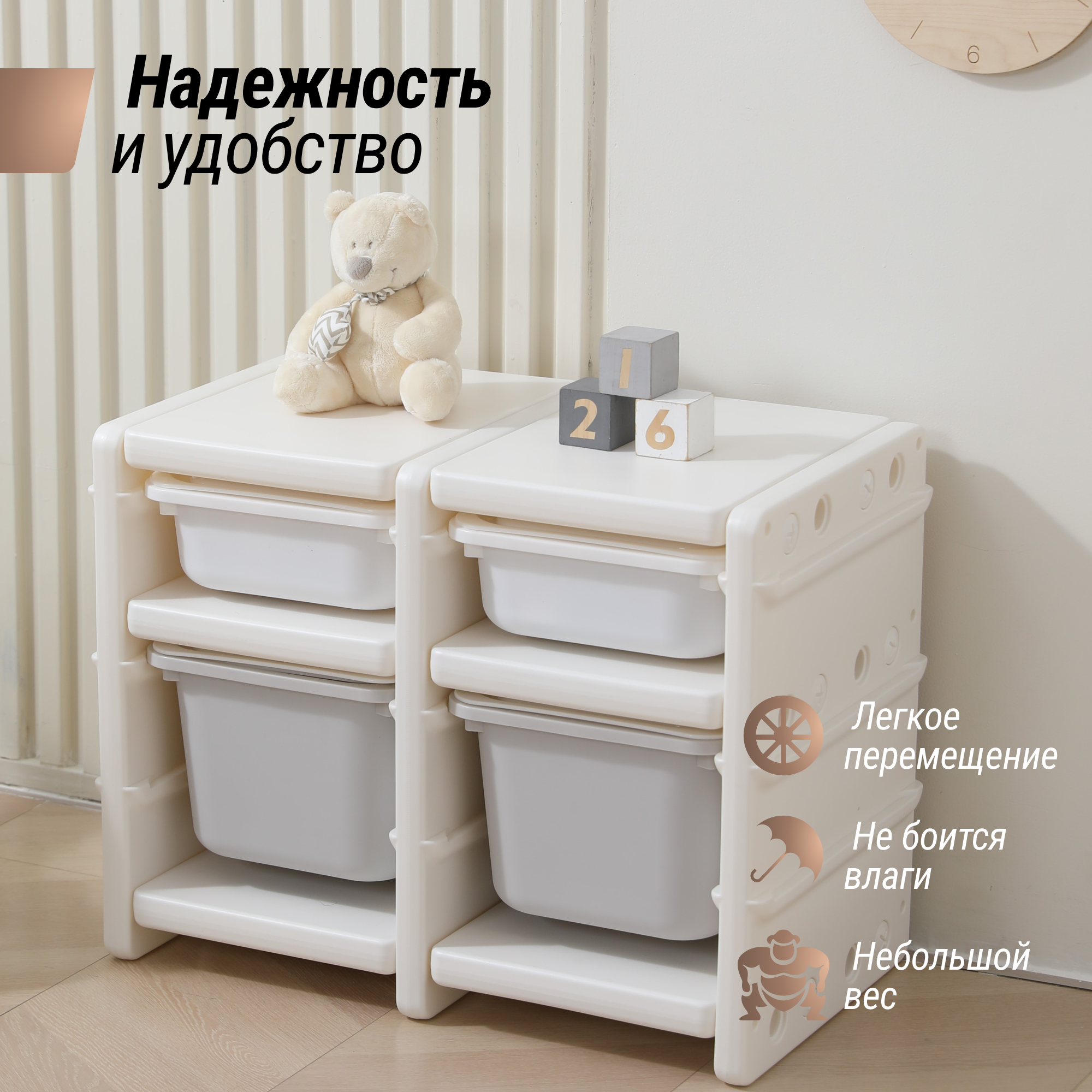 Стеллаж UNIX Kids для хранения игрушек из пластика, 6 ящиков, 73х30х63 см, серый, белый