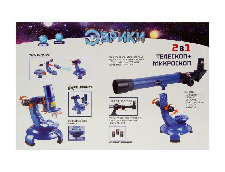 Эврики. Набор ученого "Телескоп+Микроскоп", свет, 3-х кратное увеличение №SL-01928 арт.1629481 1629481 интересное:
