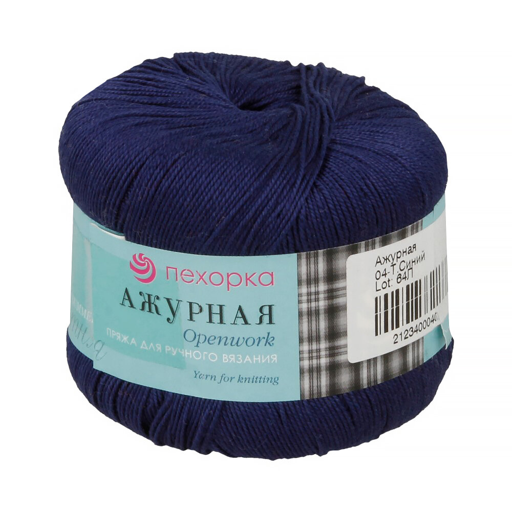 Купить Пряжа Пехорский текстиль "Ажурная" мерсеризованный хлопок, 280 м, 50 г, 04-Темно-синий