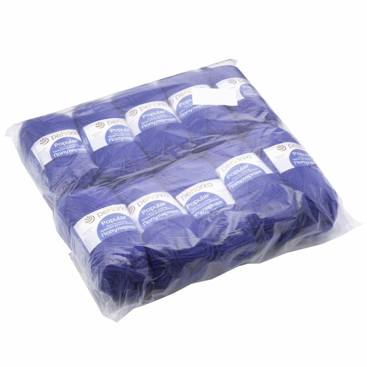 Пряжа Популярная (Пехорка), Ультрамарин - 491, 50% шерсть, 45% акрил, 5% акрил высокообъёмный, 10 мотков, 100 г, 133 м.