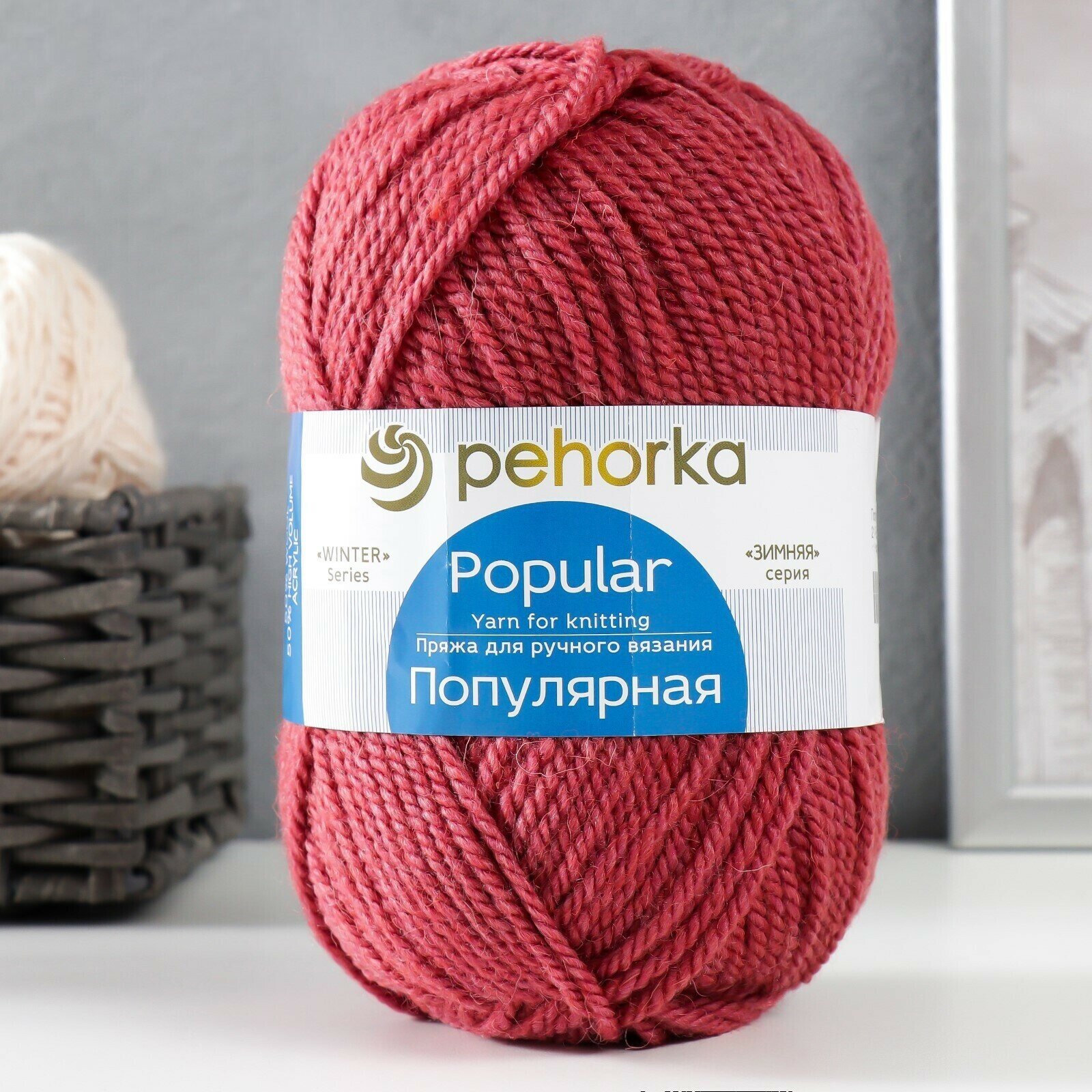 Пряжа Популярная (Пехорка), Брусника - 21, 50% шерсть, 45% акрил, 5% акрил высокообъёмный, 10 мотков, 100 г, 133 м.