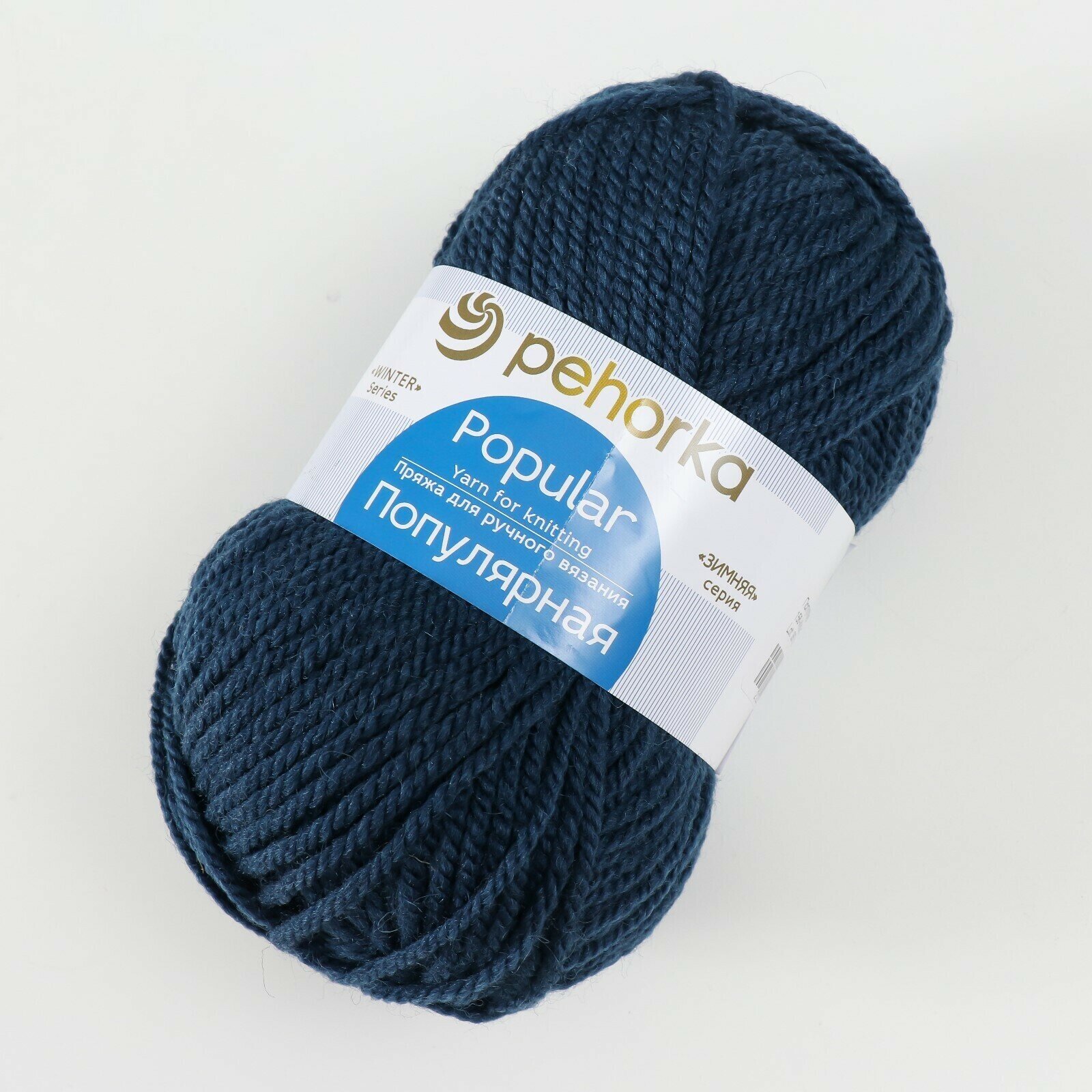 Пряжа для вязания Пехорка 'Популярная', 100г, 133м (50% шерсть, 50% акрил) (156-Индиго), 10 мотков