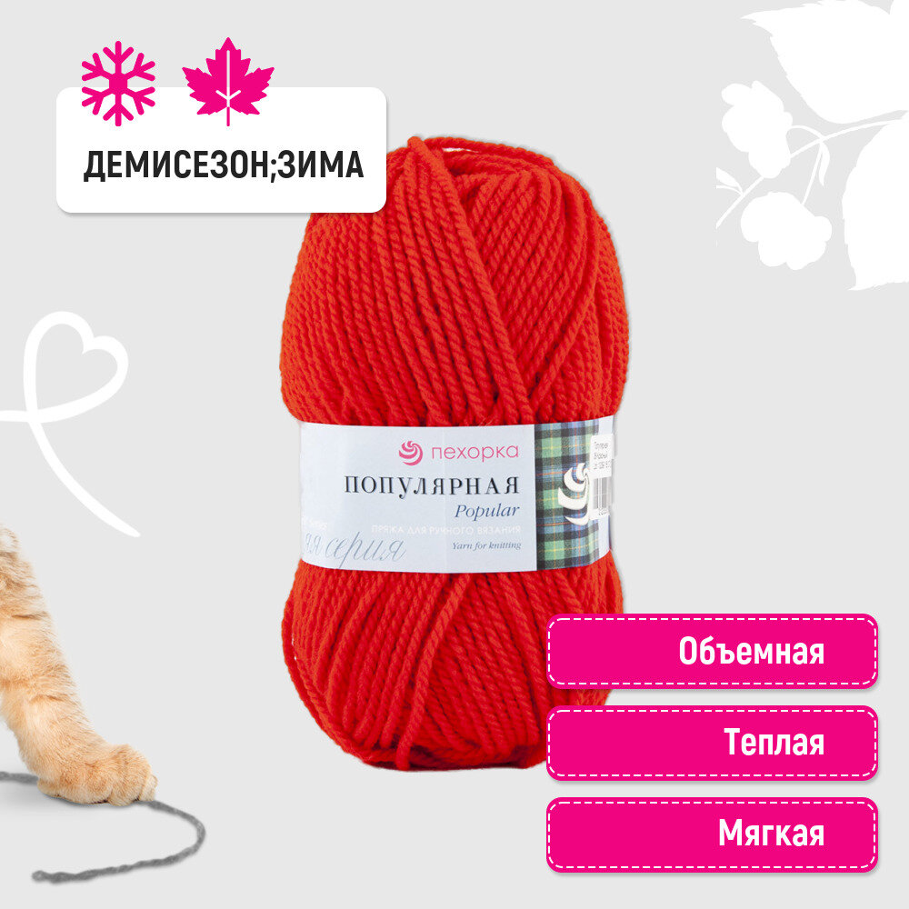 Пряжа Пехорка Популярная красный (6), 50%шерсть/50%акрил, 133м, 100г, 1шт