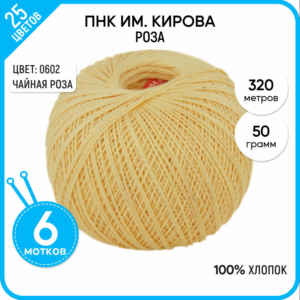 Нитки вязальные ПНК Кирова "Роза", 100% хлопок, 6 шт по 50 г, 330 м, цвет 0102, молочный (роза.0102)