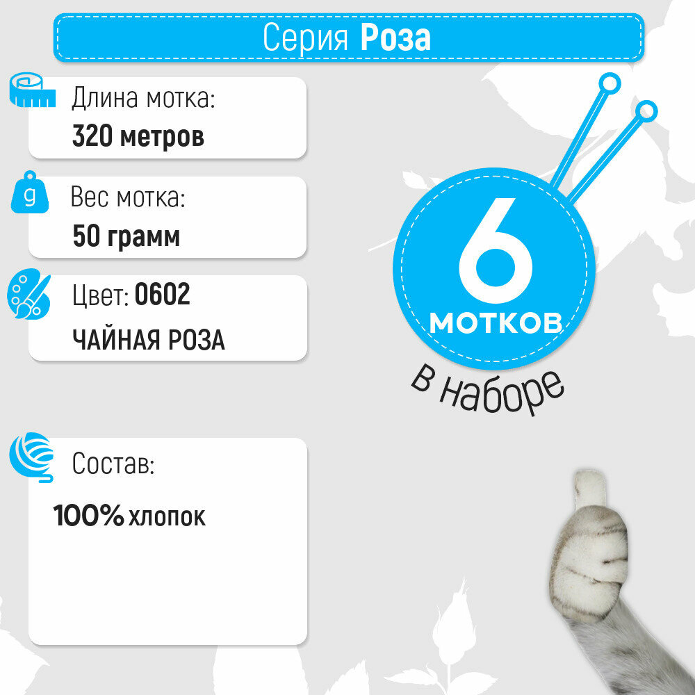 Нитки вязальные ПНК Кирова "Роза", 100% хлопок, 6 шт по 50 г, 330 м, цвет 0810 (роза.0810)