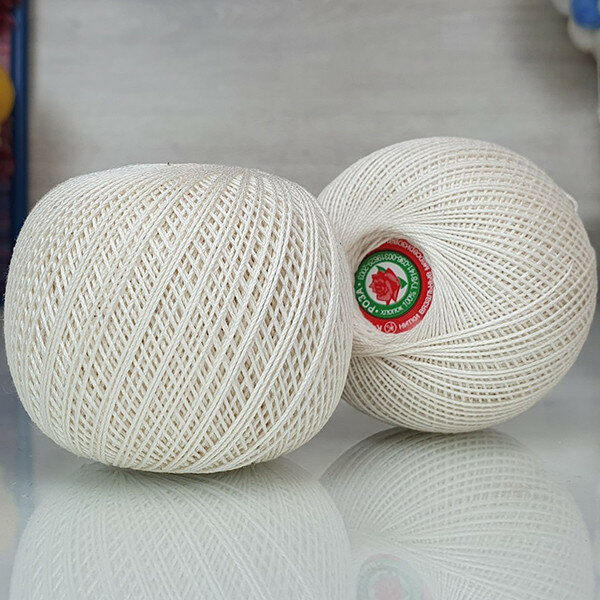 Нитки для вязания и плетения 'роза' (100% хлопок), 50г, 330м (0102 молочный), 6 мотков
