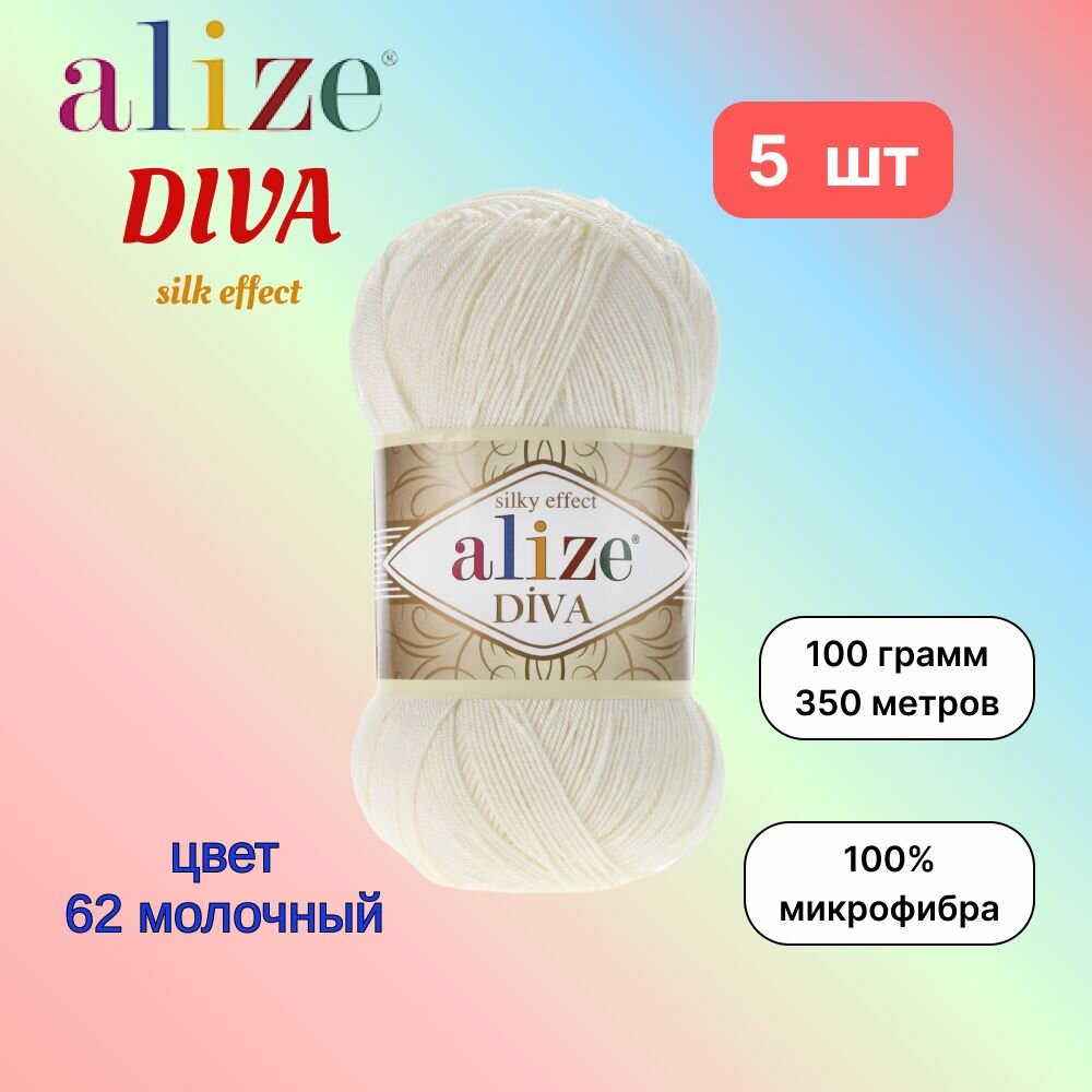 Купить Пряжа Alize Diva Молочный (62) 5 мотков 100 г/350 м (100% микрофибра) ализе дива