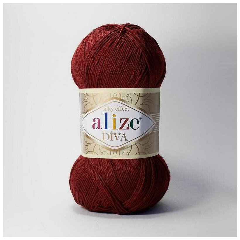 Пряжа Alize Diva - 1 шт, 57 бордовый, 350м/100г, 100% микрофибра акрил /Ализе Дива/
