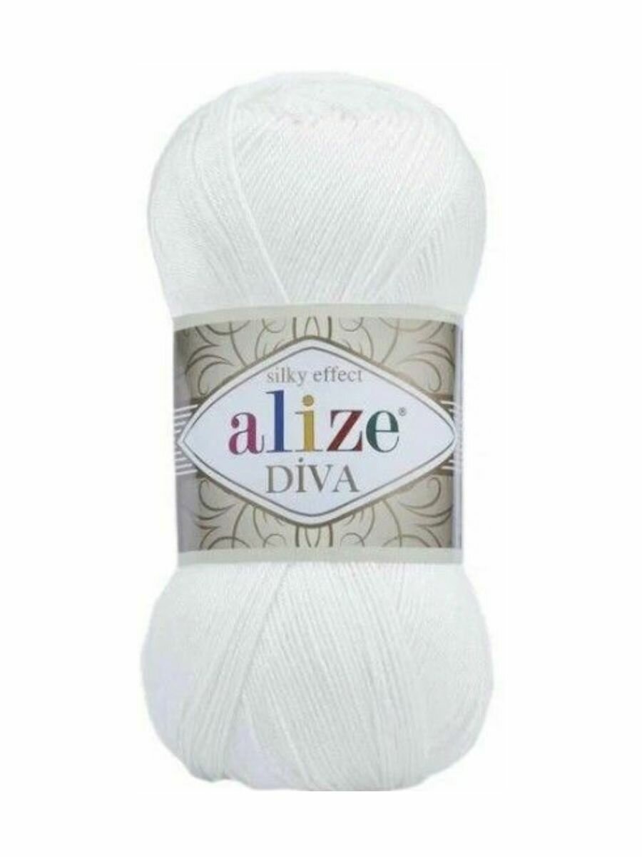 Купить Пряжа Alize Diva белый (55), 100%микрофибра, 350м, 100г, 1шт