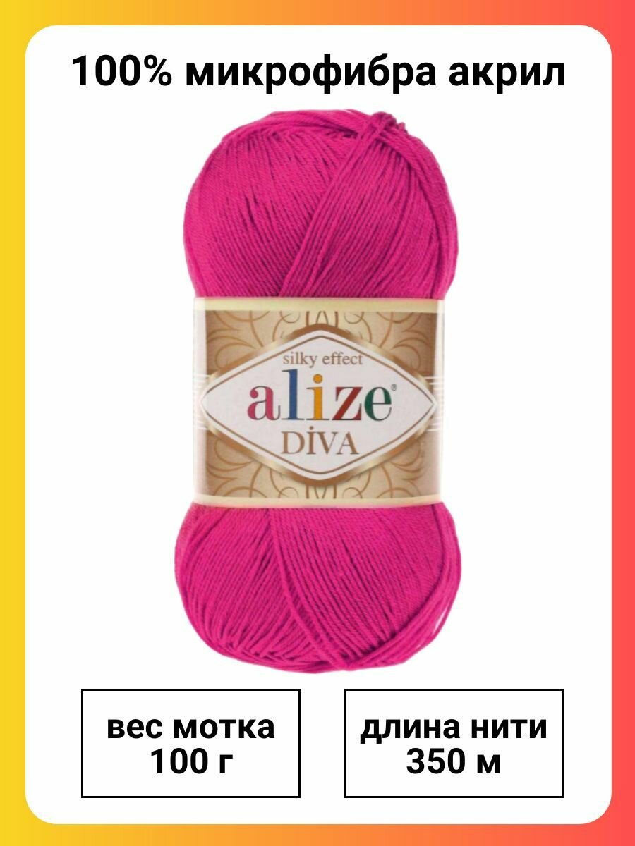 Пряжа Alize Diva фуксия (149), 100%микрофибра, 350м, 100г, 1шт