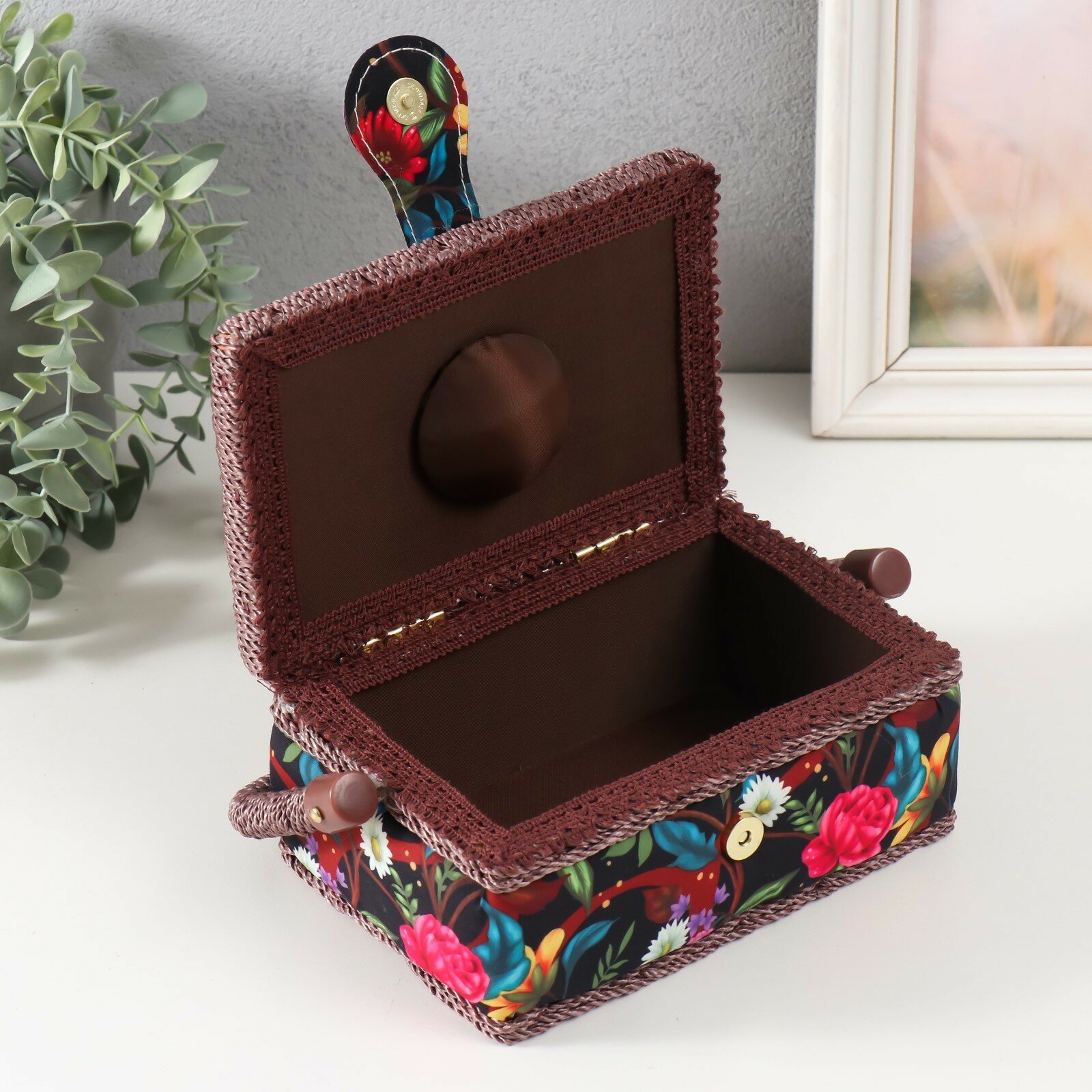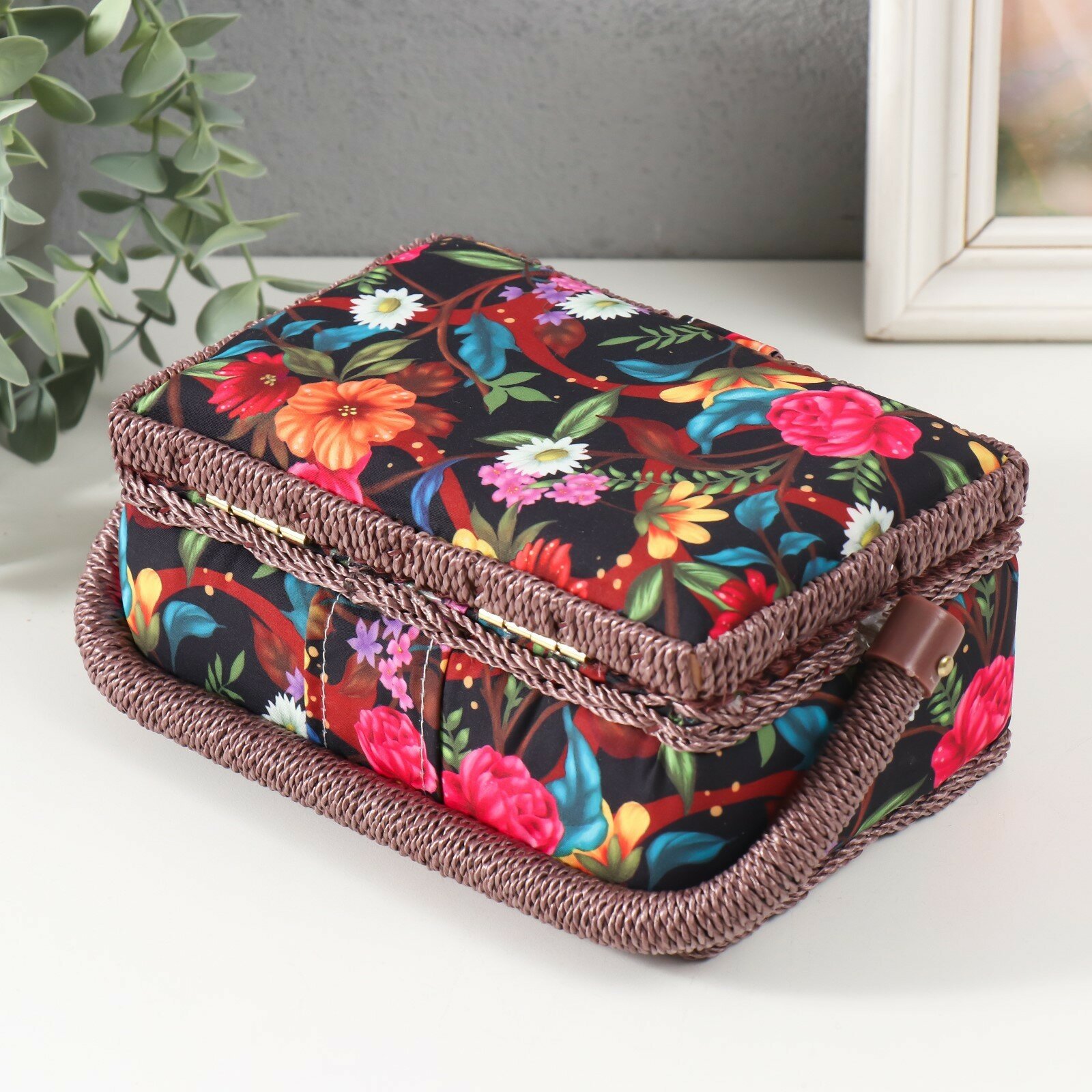 Купить Шкатулка для рукоделия КНР "Цветочный сад в ночи", дерево, текстиль, 18х12х9,5 см