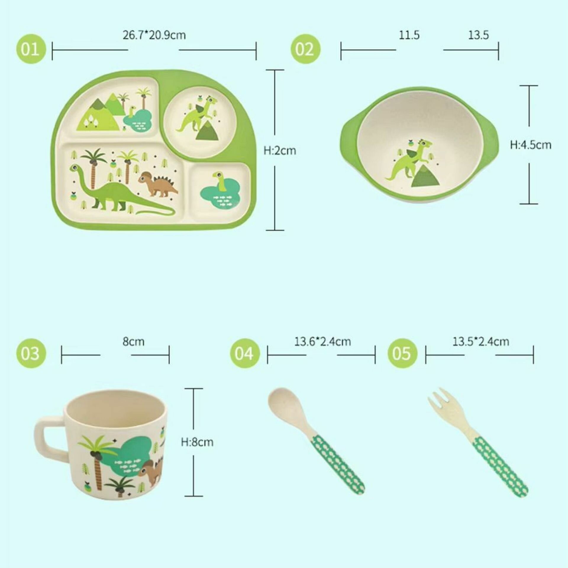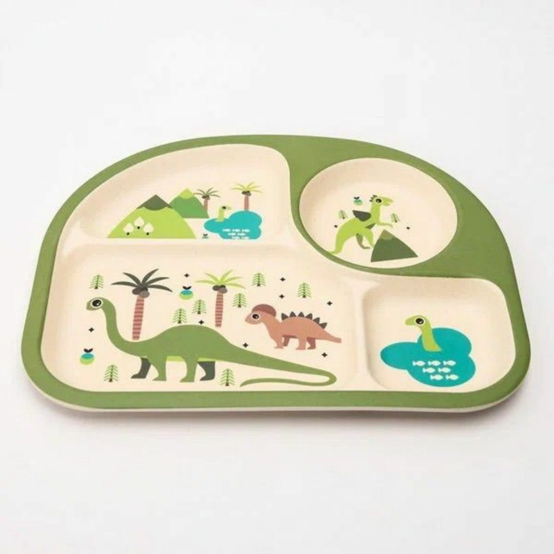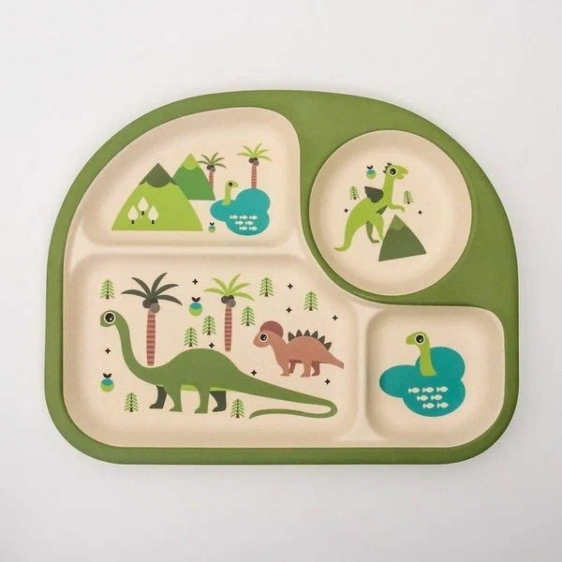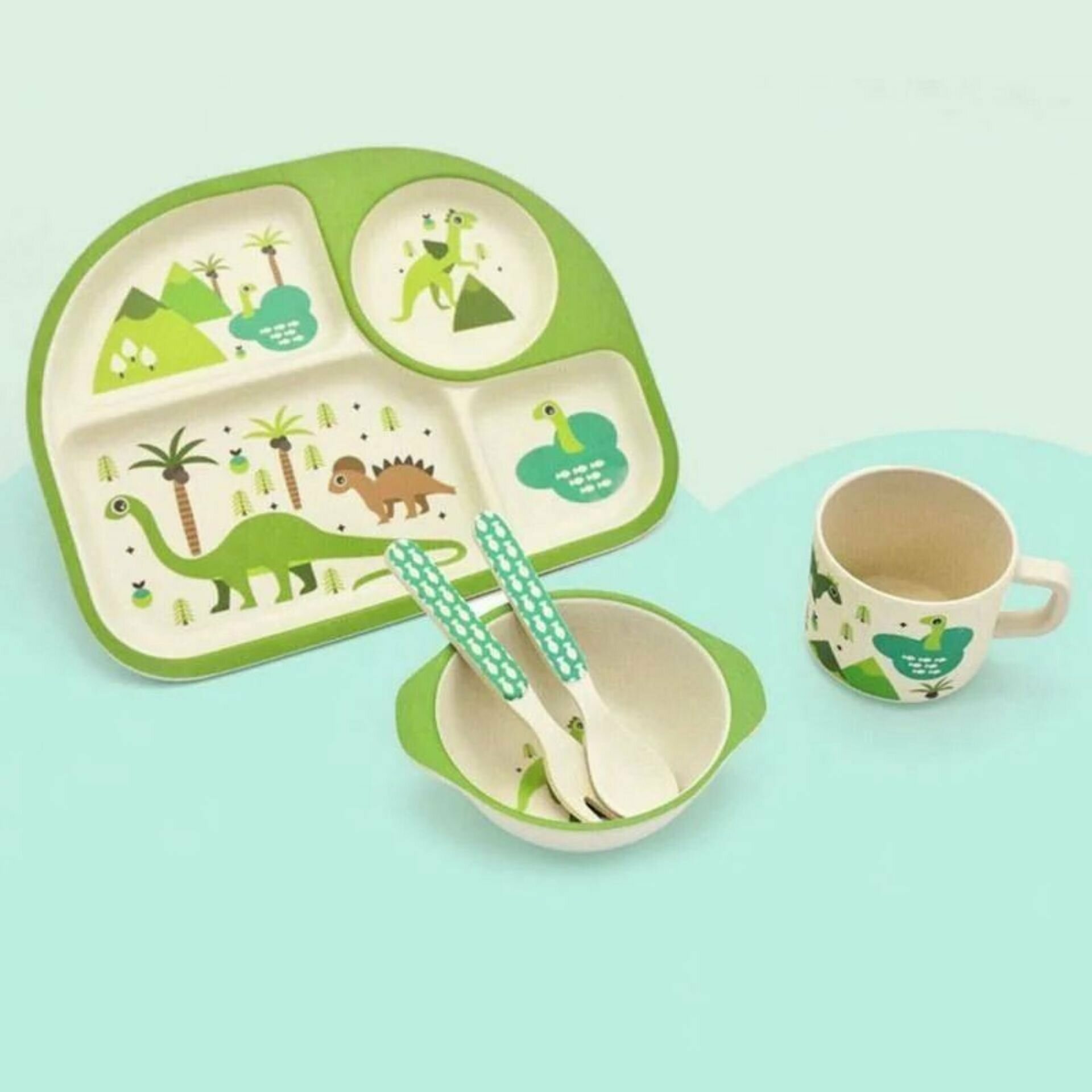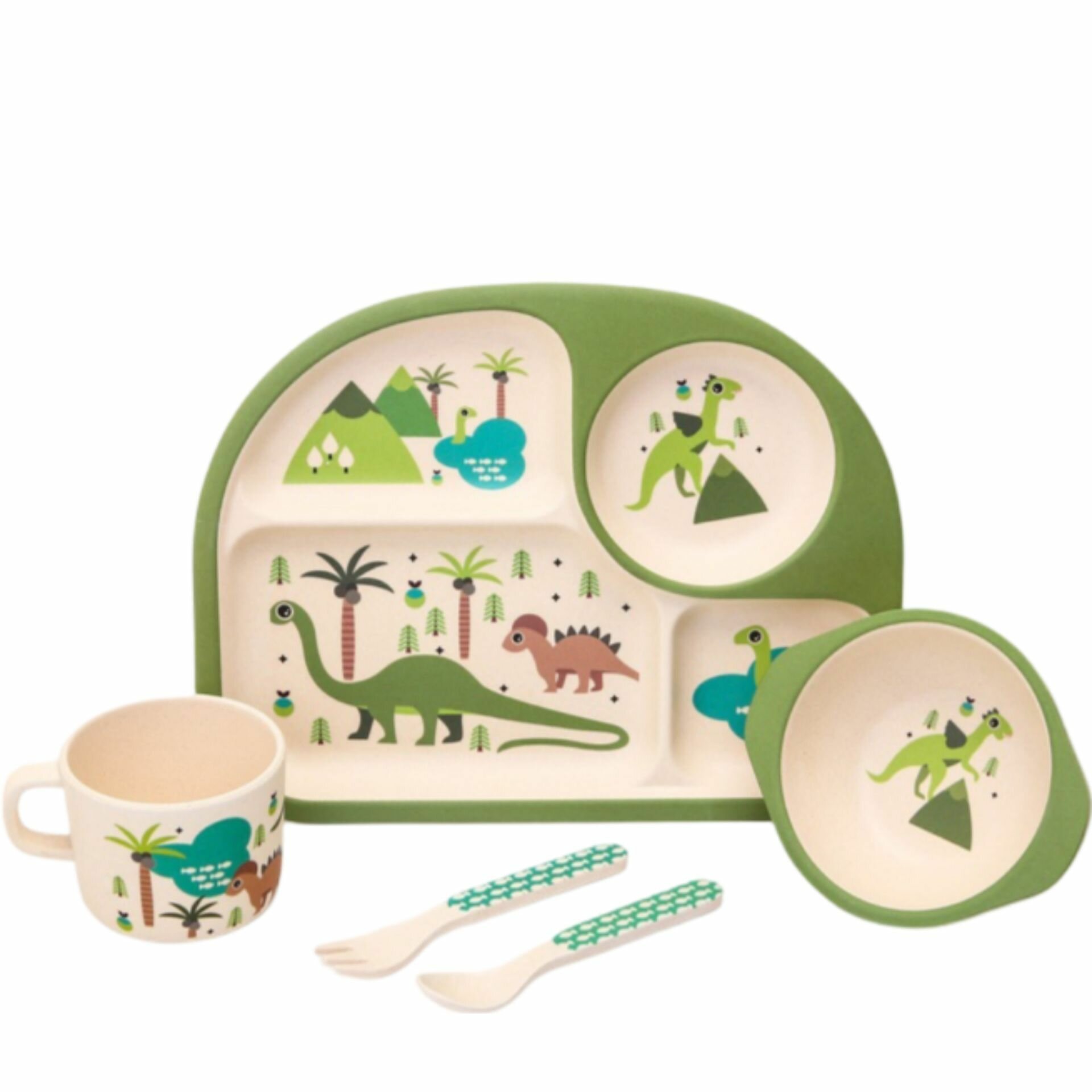 Набор детской бамбуковой посуды "Rafiki" Динозаврик, тарелка, миска, стакан, приборы, 5 предметов