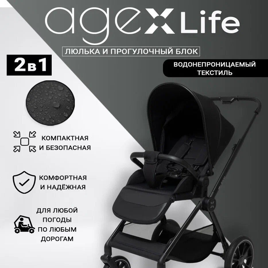 Коляска 2 в 1 Agex Life, Black (Черный)