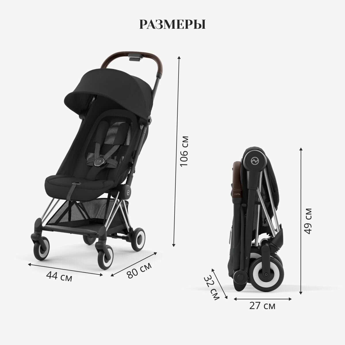 Прогулочная коляска Cybex Coya, цвет Sepia Black / Chrome Brown (Чёрный / Серебристое шасси)