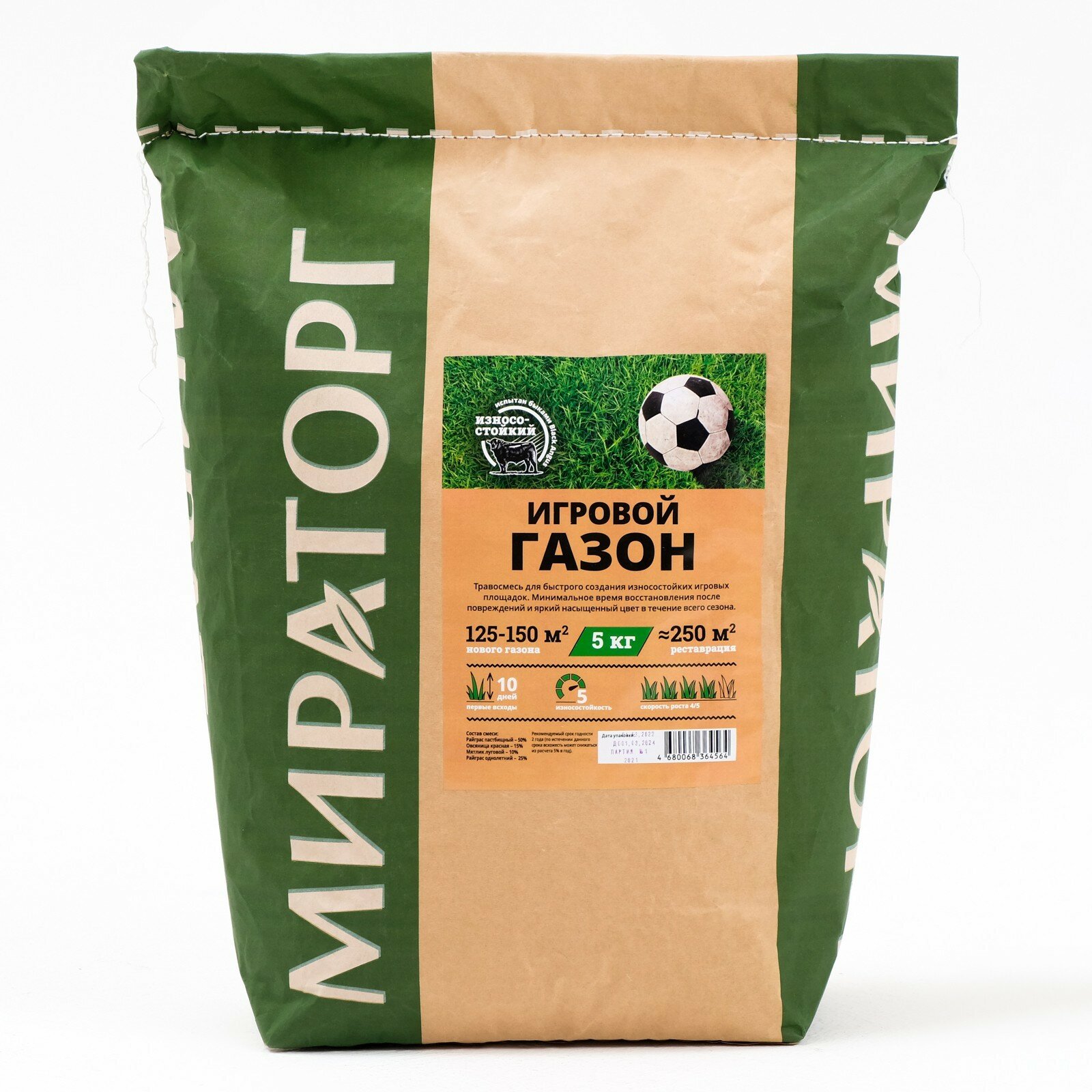 Смесь семян Мираторг "Игровой газон", износоустойчивая, спортивный газон, 150м², 5кг интересное:
