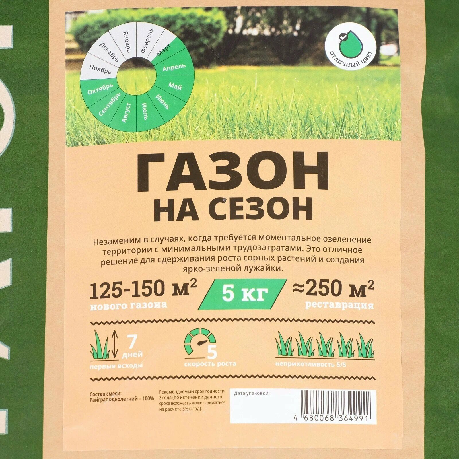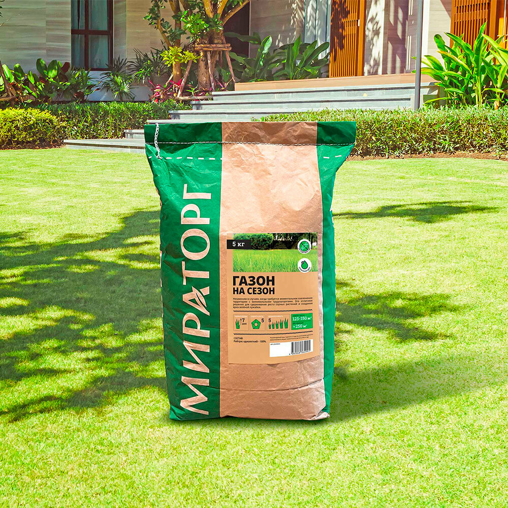 Семена газонной травы Газон на сезон Мираторг 5 кг интересное: