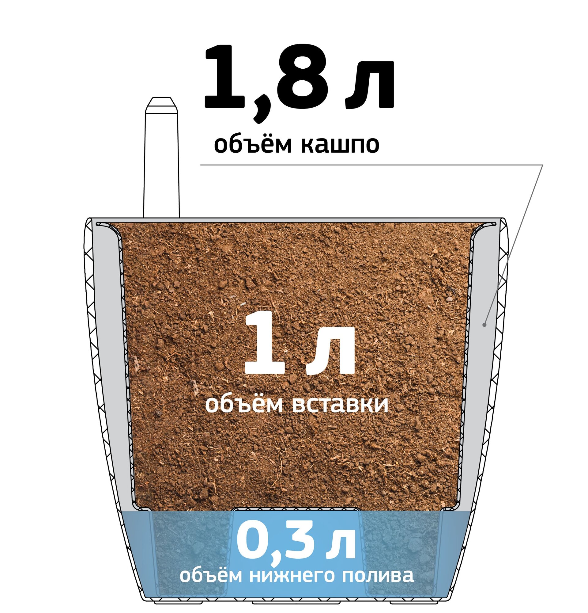 Кашпо шэнк D150 мм 2л с вставкой и с автополивом серый