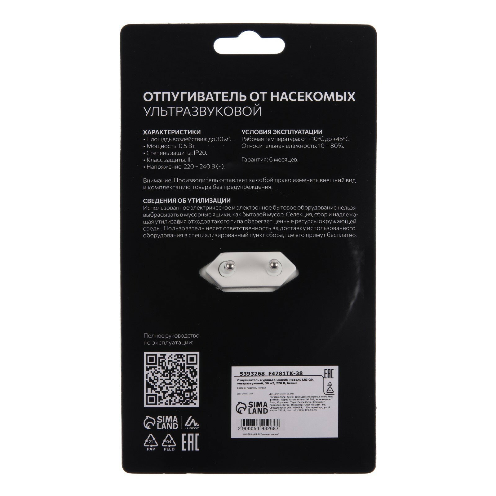 Купить Отпугиватель муравьев Luazon LRI-20, ультразвуковой, 30 м2, 220 В, белый 5393268