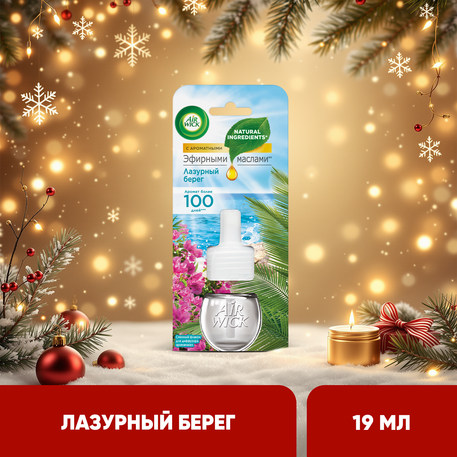 Air Wick Сменный флакон для электрического ароматического диффузора аромамасел Лазурный берег, 19 мл