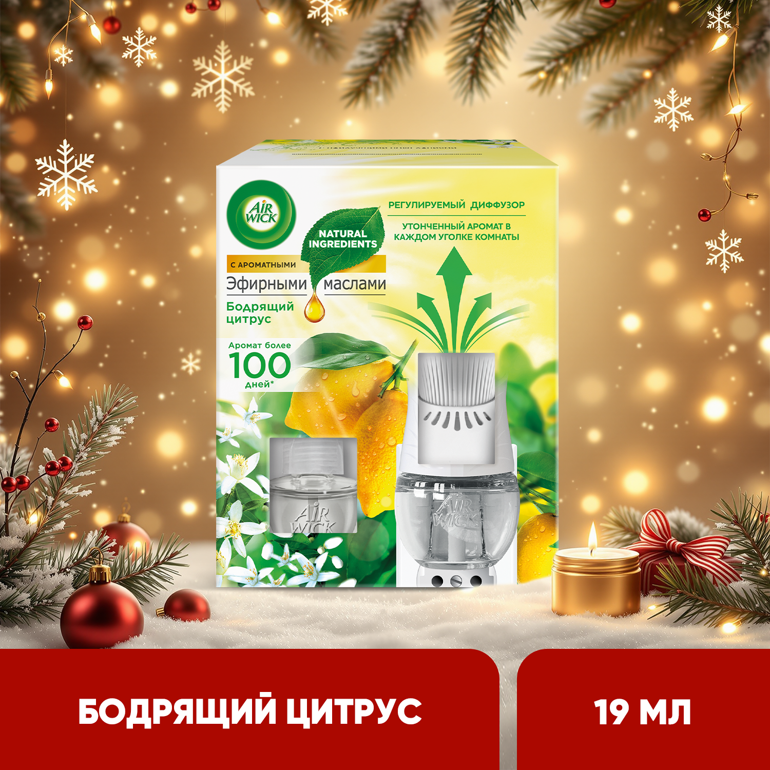 Электрический ароматический диффузор аромамасел Air Wick Бодрящий цитрус для дома со сменным флаконом, освежитель воздуха 19 мл