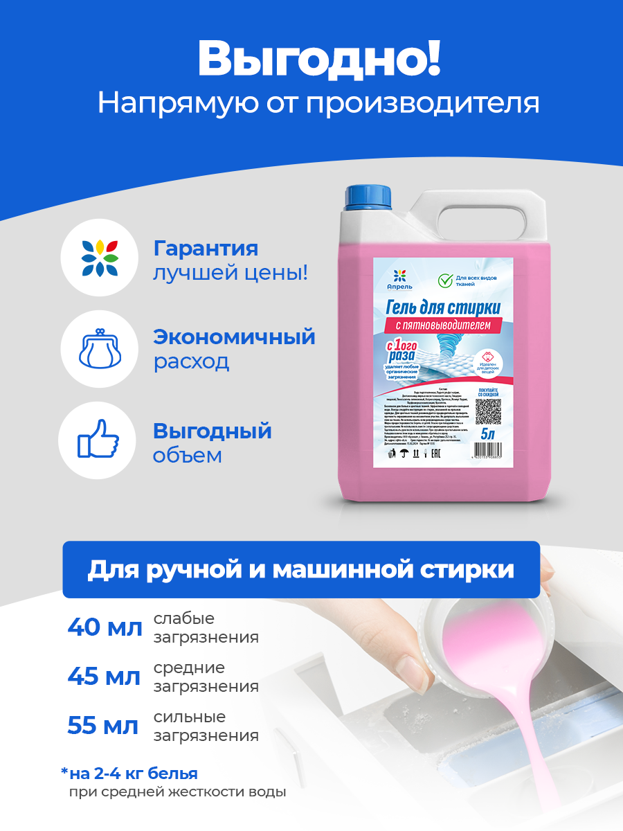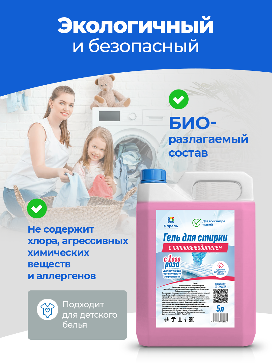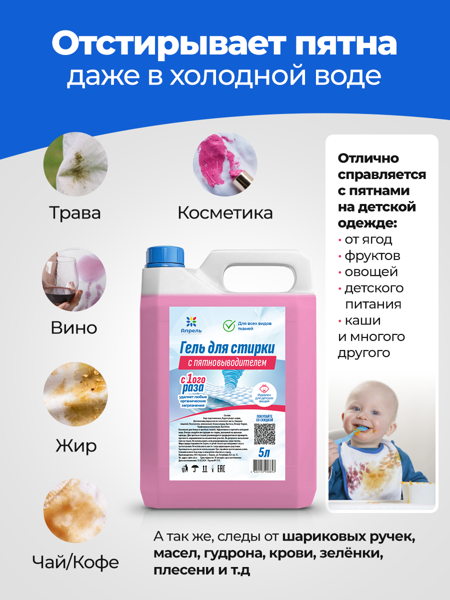 Гель для стирки с пятновыводителем Опрель, без хлора и фосфатов, 5 л интересное: