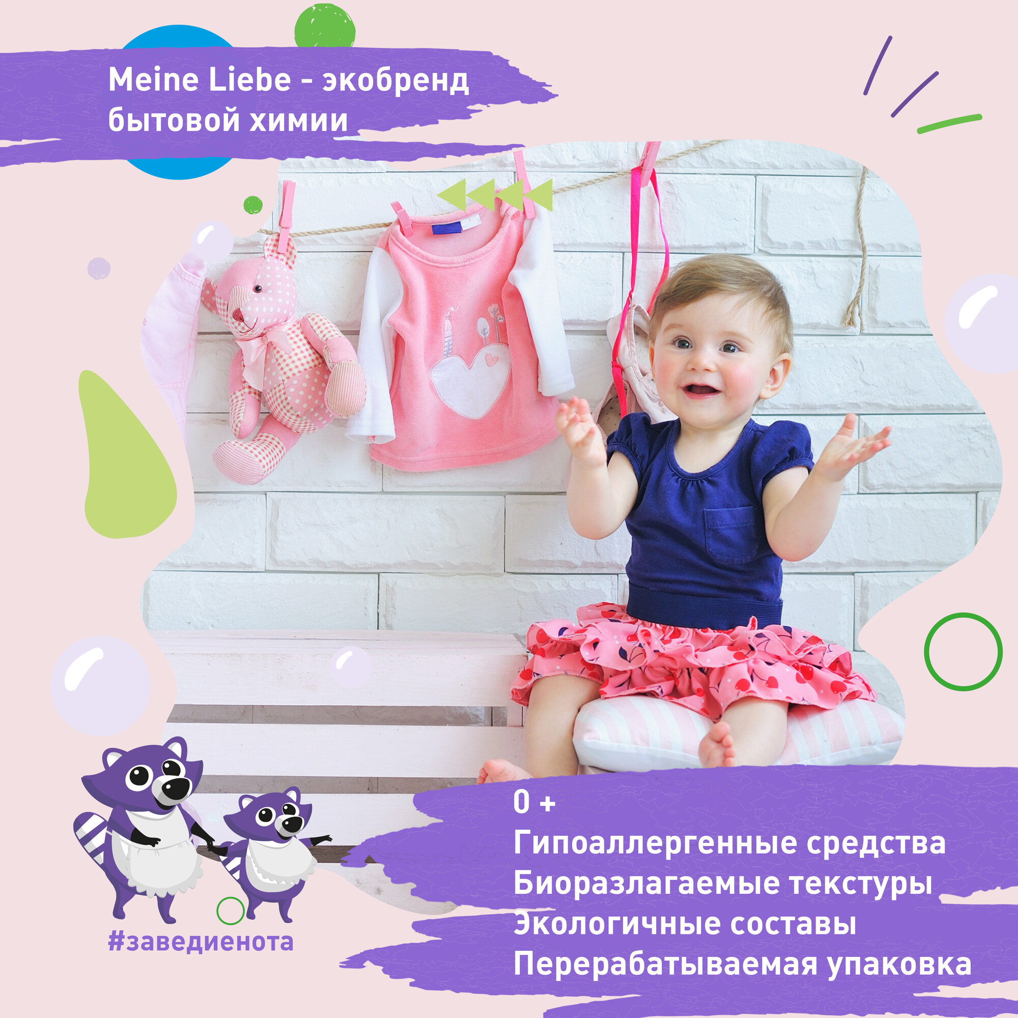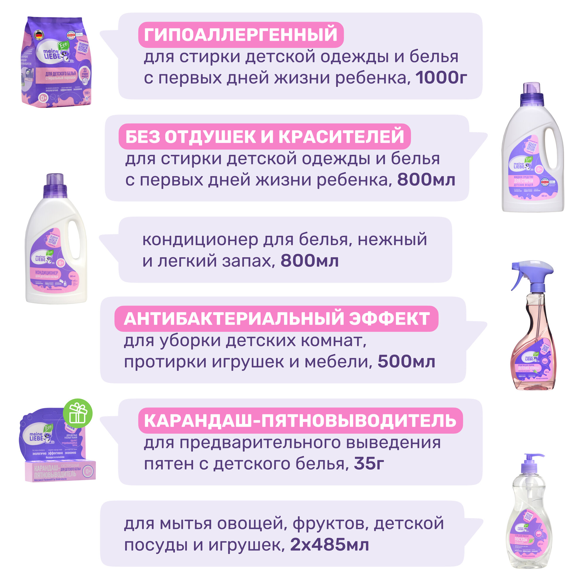 Набор экосредств Meine Liebe, для детского белья, 7 предметов интересное: