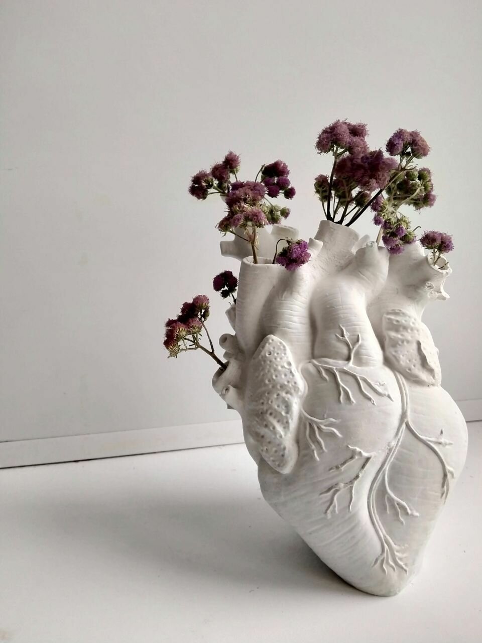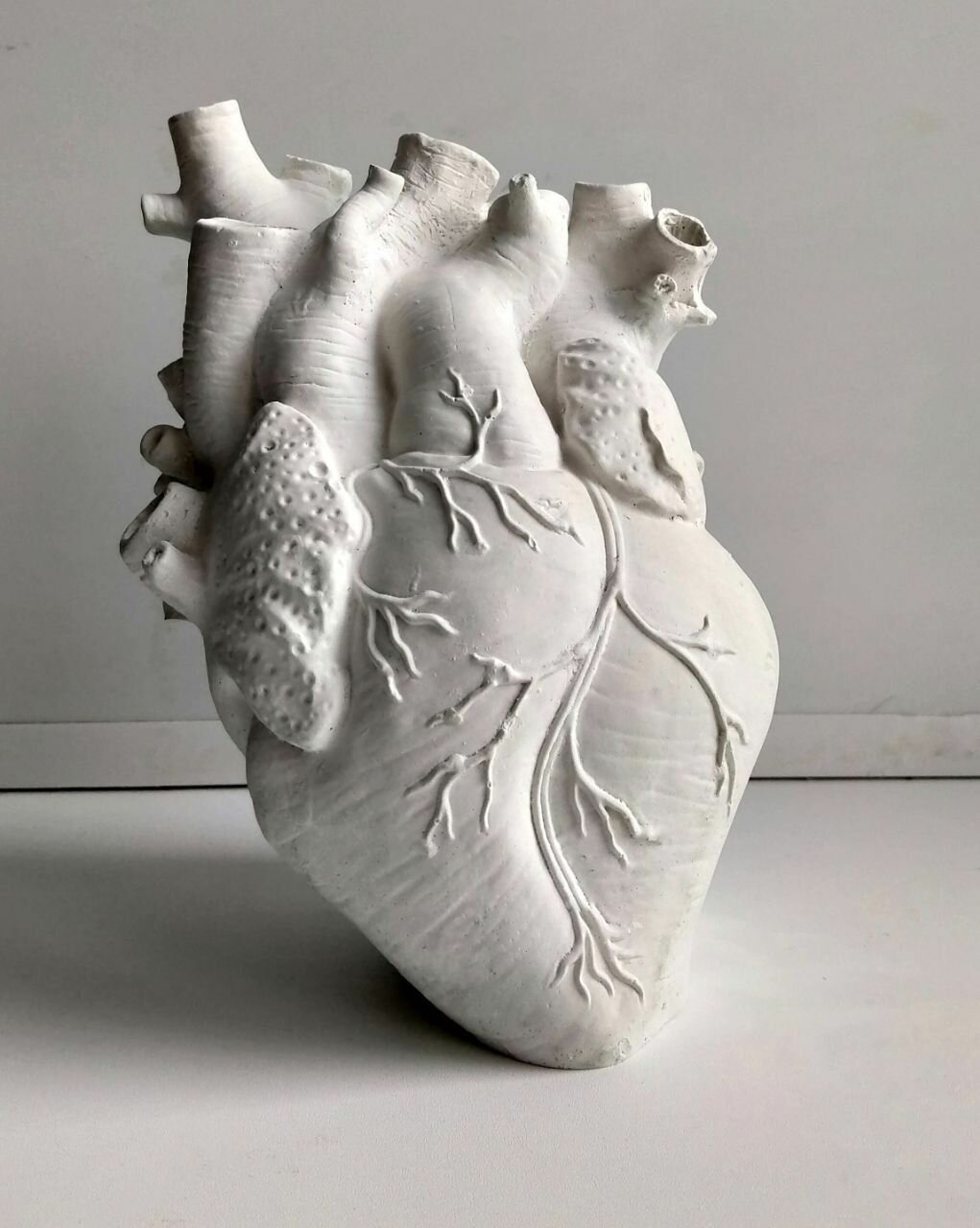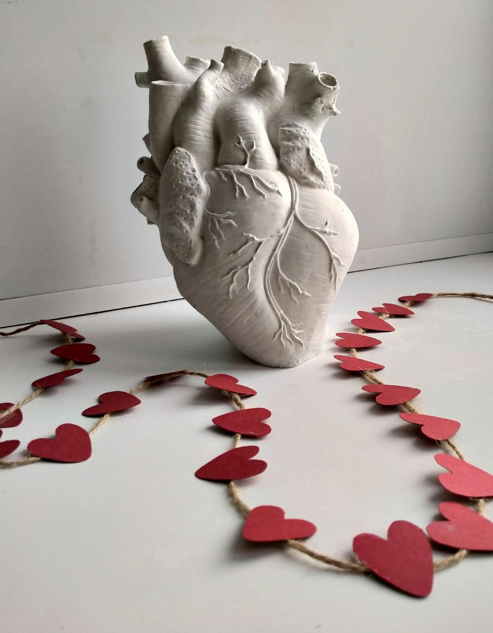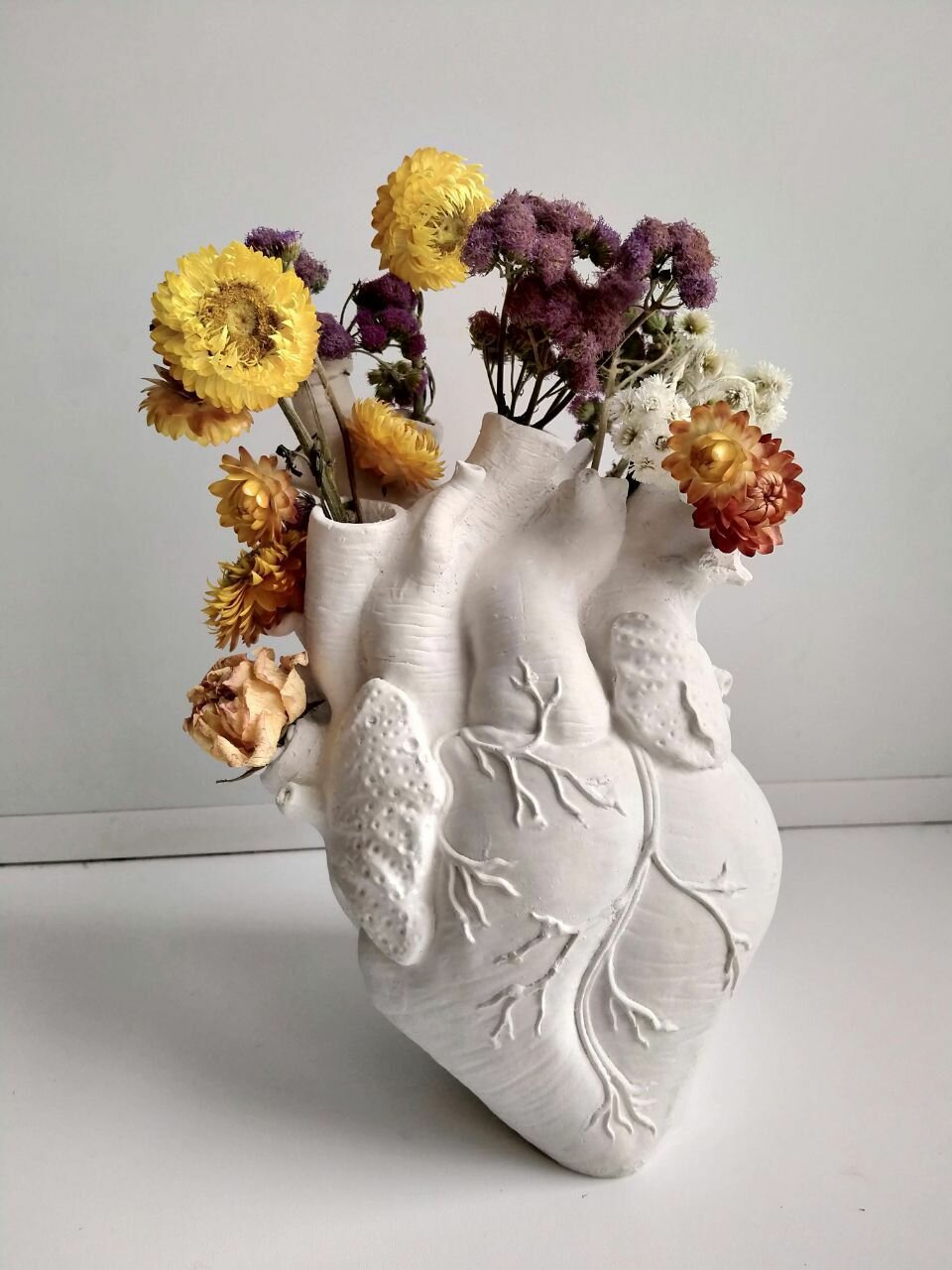 Гипсовая ваза в форме сердца, для сухоцветов, настольная, гипс, белая интересное: