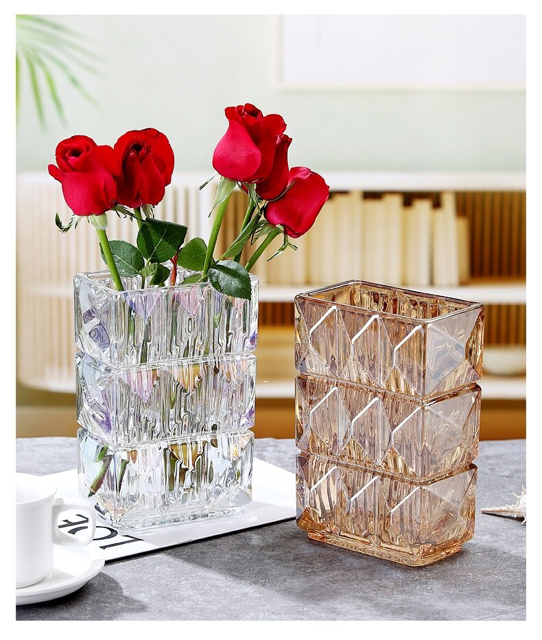 Ваза настольная для цветов из хрустального стекла (прозрачная)