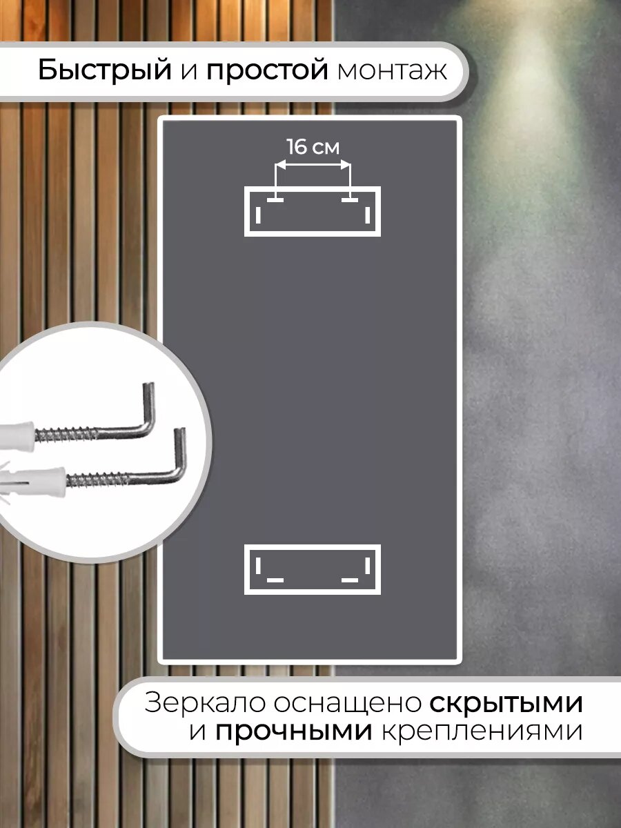 Зеркало настенное для ванной КерамаМане 70*100 см с холодной подсветкой 6000 К с сенсорной кнопкой