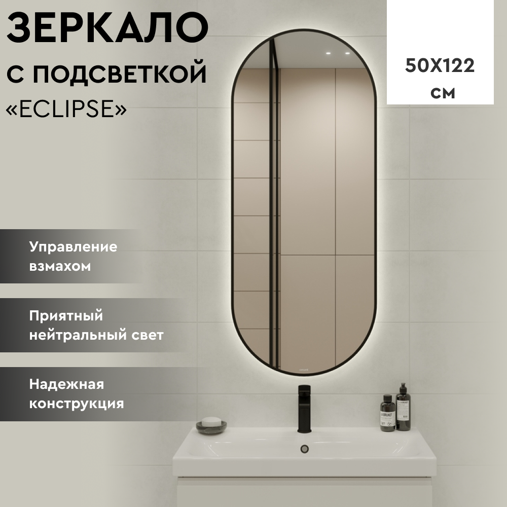 Зеркало ECLIPSE smart 50x122 с подсветкой овальное в черной рамке