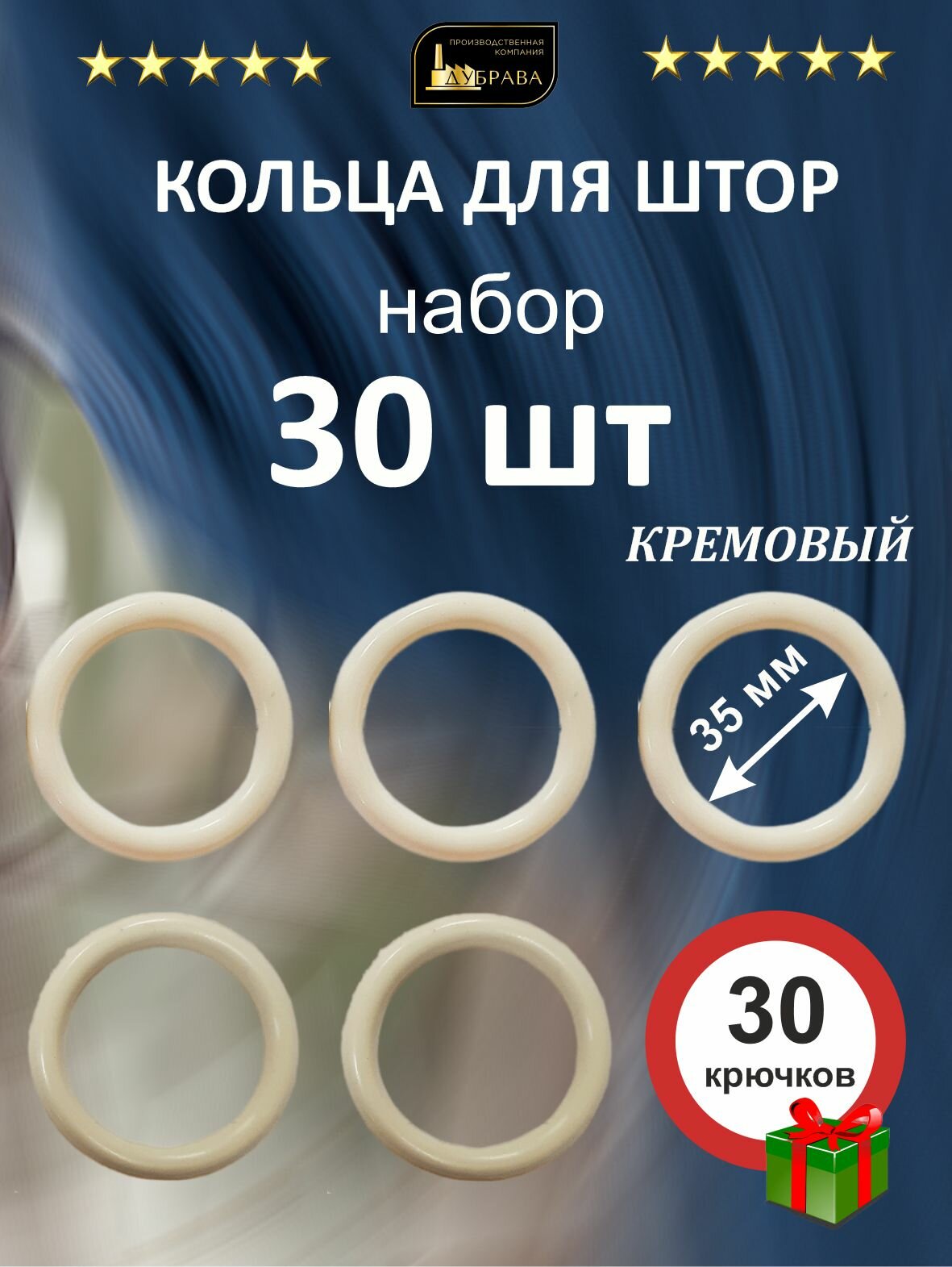 Кольца для штор с крючками 35мм, 30шт, кремовые.