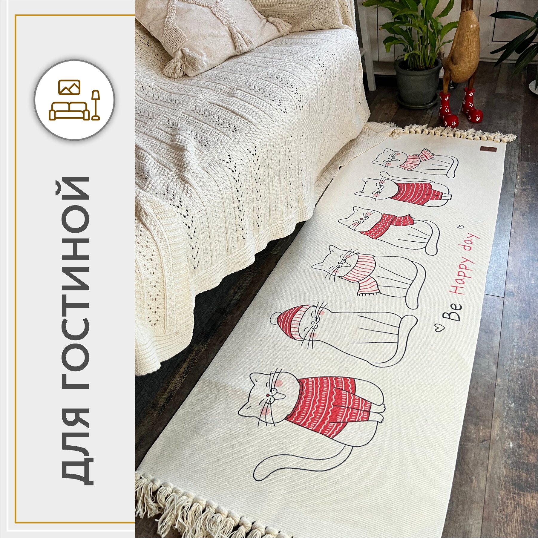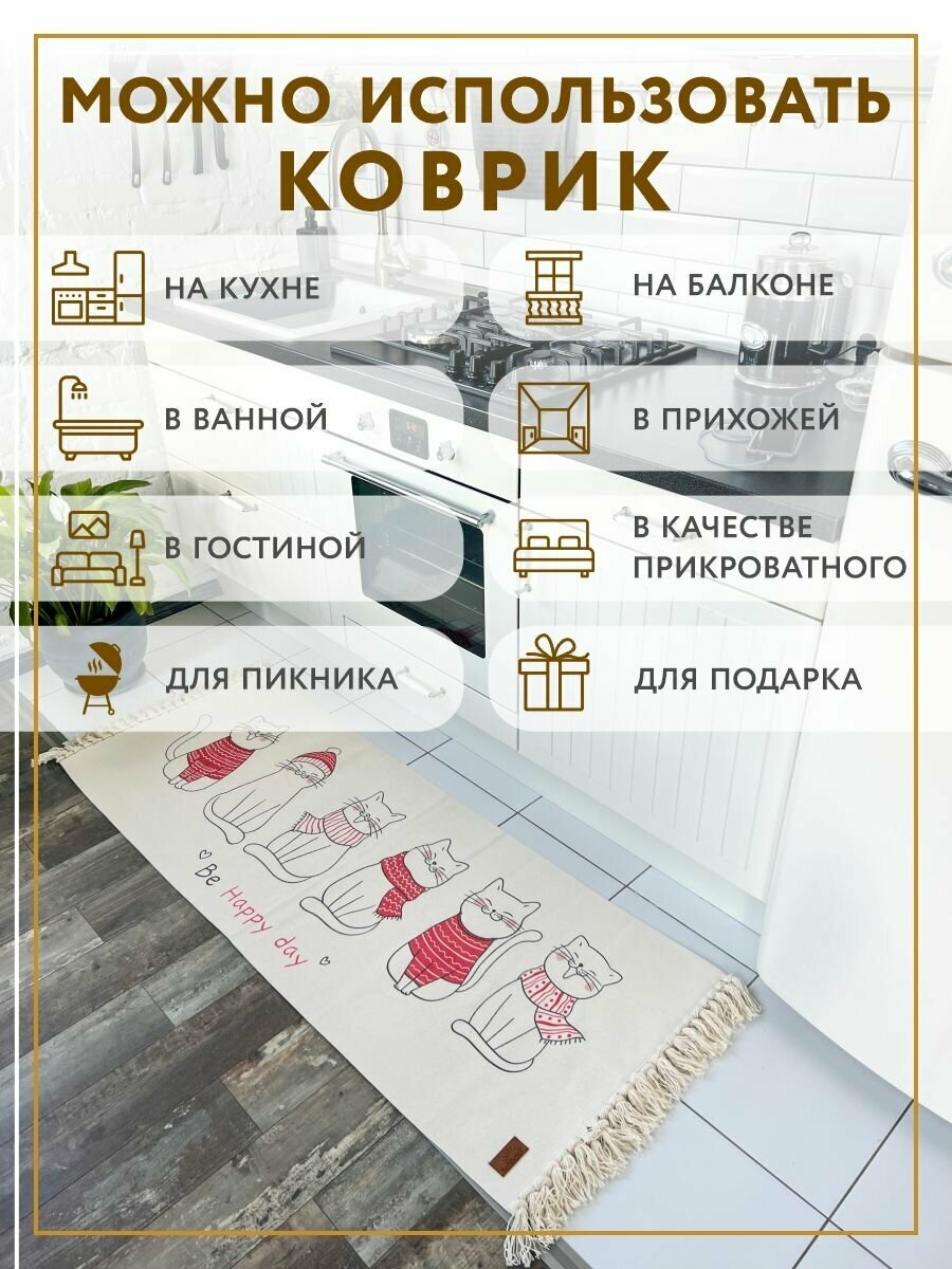 Коврик прикроватный в ЭКО-стиле/Коврик для ванной/Коврик в детскую 60*150 см