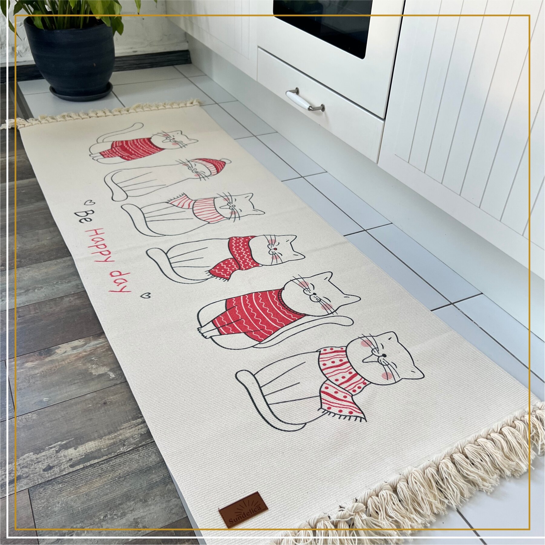 Коврик с кисточками Sundelica, прямоугольный, безворсовый, с хлопковой основой, 60х150 см