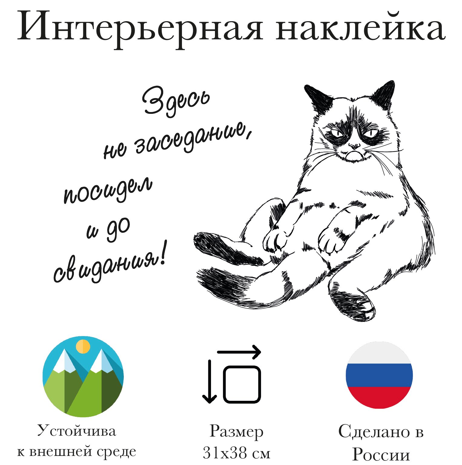 Купить Наклейки с котом на холодильник, авто или унитаз - готовое решение для интерьера кот Здесь не заседание